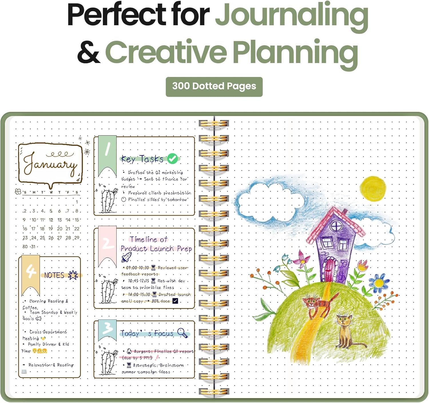 - 300 Pages Dotted Journal: Unleash your creativity with 5mm dot grid pages—ideal for journaling, sketching, planning, or goal tracking. Whether you’re using it as a work notebook, journal for writing, or notebook for school, it fits easily into your daily routine.