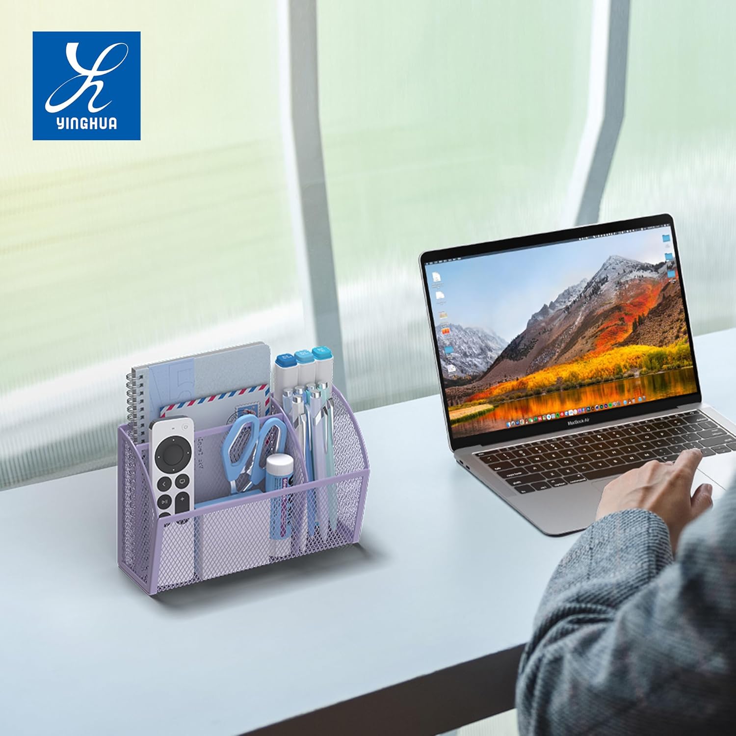 - Strong Magnetic Grip for Multi-Surface Use β This Purple 3-compartment metal mesh desk organizer securely attaches to whiteboards, refrigerators, lockers, and other magnetic surfaces with its powerful built-in magnets. The sturdy hold keeps your pens, pencils, and small essentials in place while freeing up desk space. Perfect as a pen holder for desk, office organizer, or classroom pencil holder