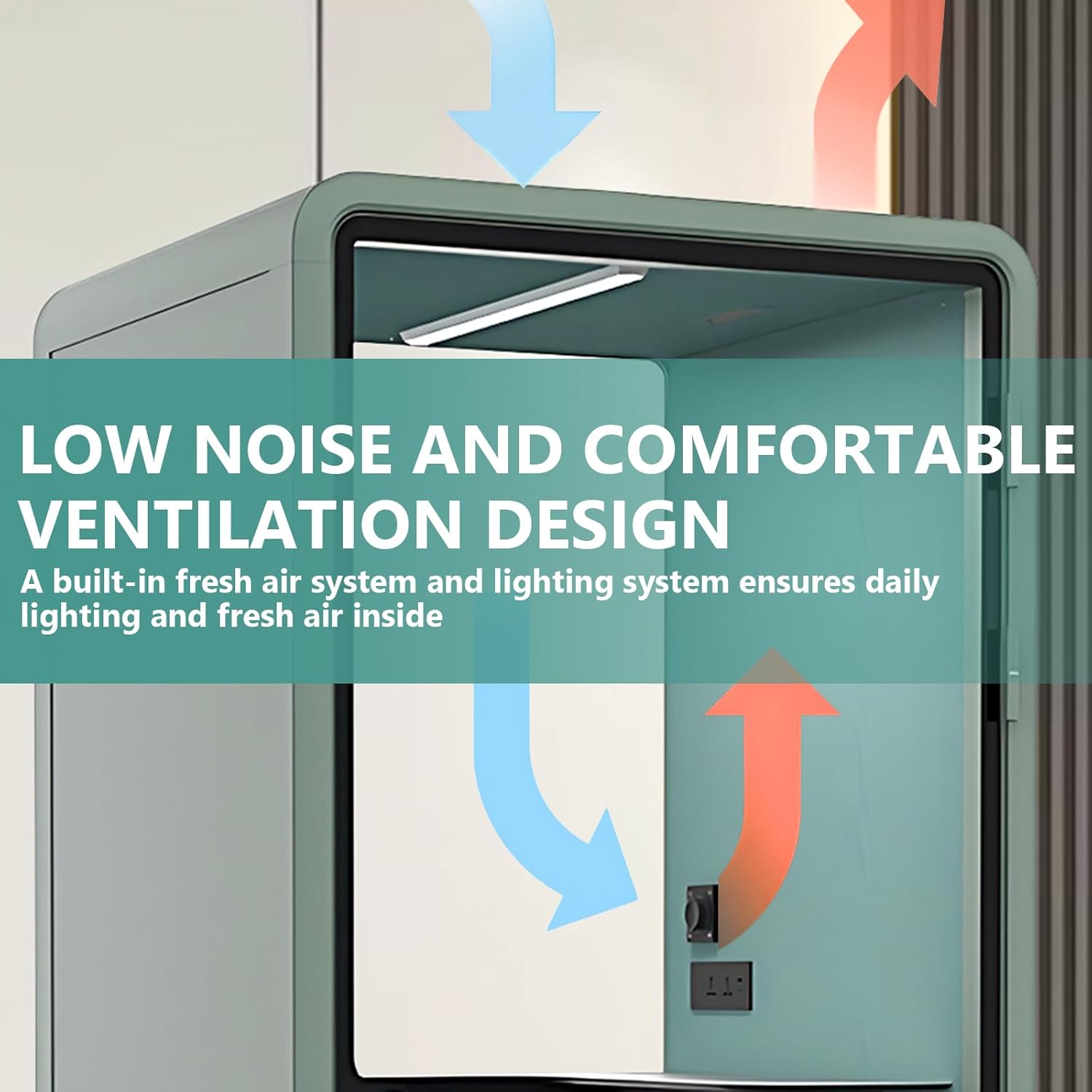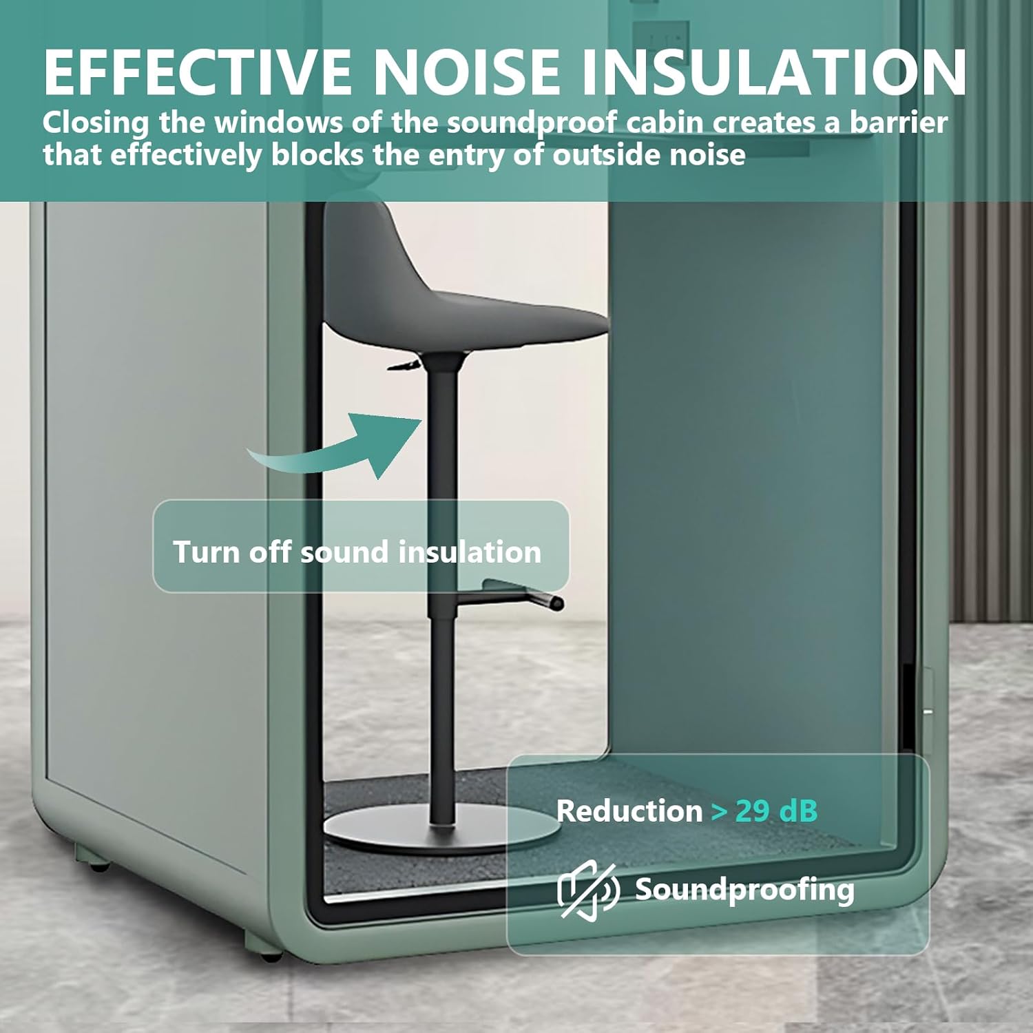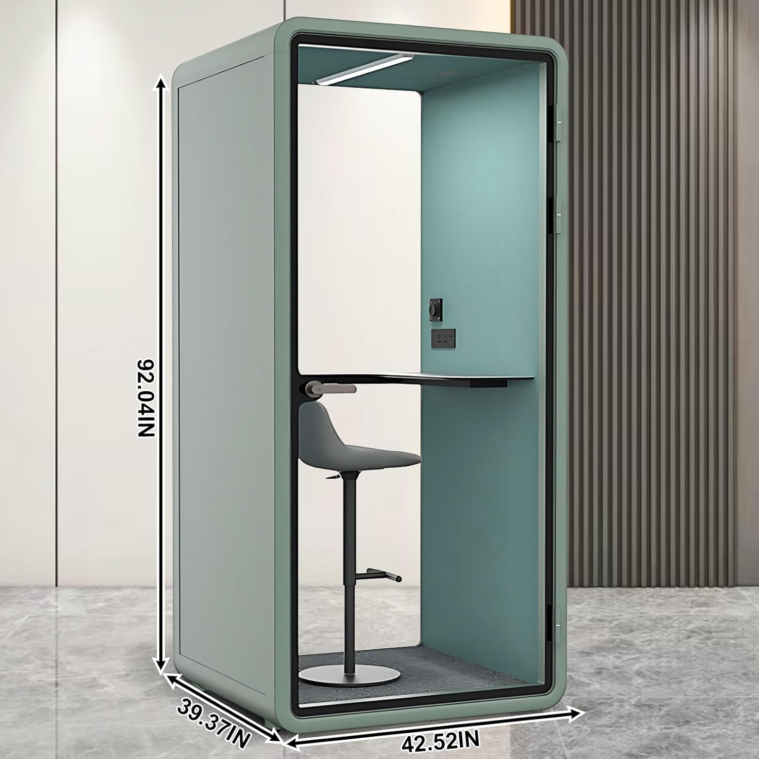 Office Sound Booth with Audio Privacy - Soundproof Recording Booth Includes Green Frame with Curved Corners,Soundproof Room with Light,Steel Plate Structure for Study (42.52IN)