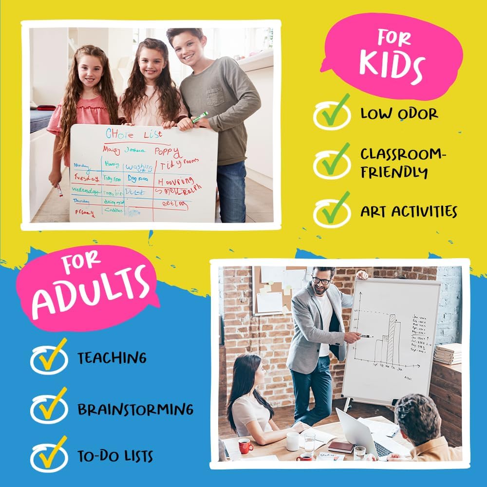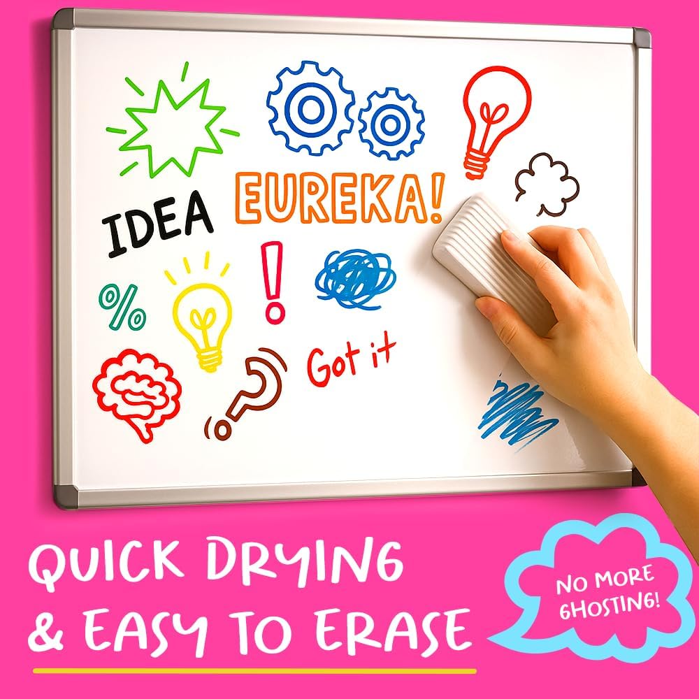 - Smear Proof, No Ghosting Whiteboard Pens - Our colorful dry erase markers for kids has ink specially formulated to provide a versatile writing experience. The ink on these dry erase board markers is rub-resistant that wipes clean completely.