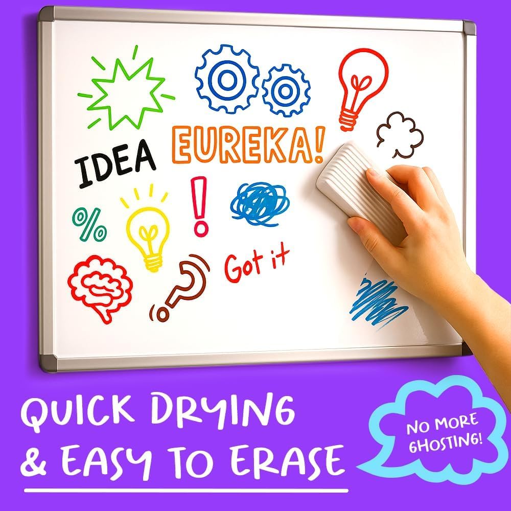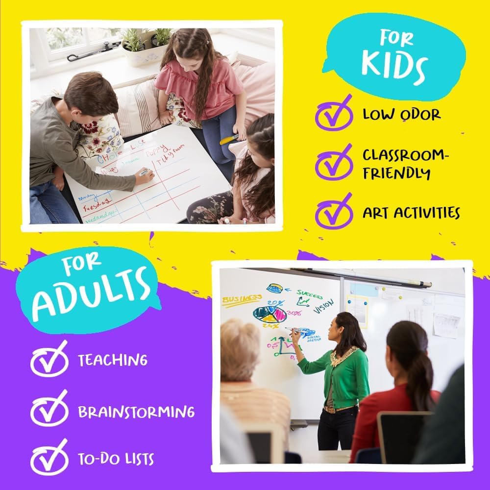 - Low Odor Erasable Markers with Easy Clean Formula - Low odor washable ink erases 100% clean without residue, ghosting, or permanent staining on any compatible writing surface.