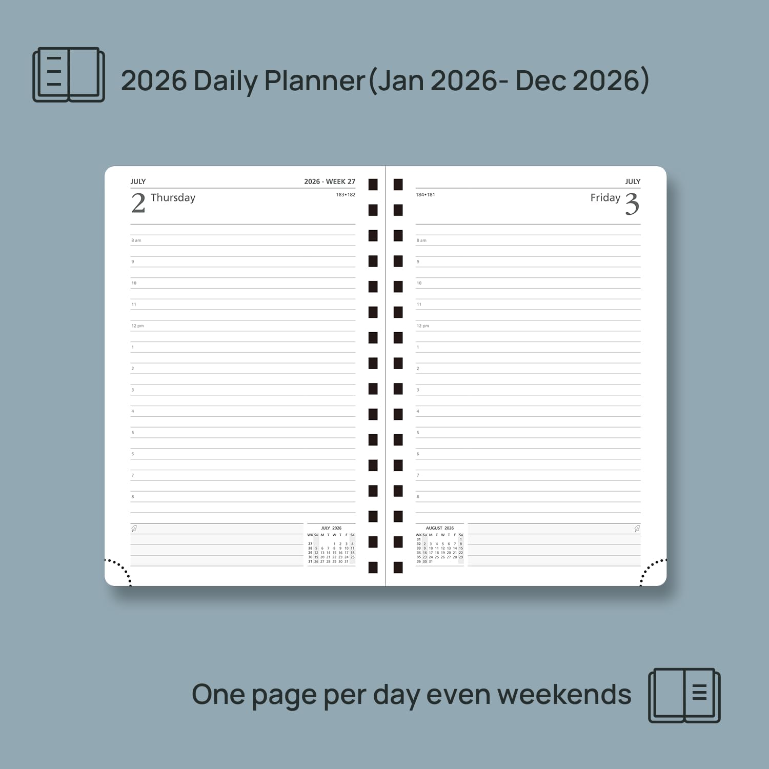 - One Page Per Day Even Weekends:This daily planner (Jan 2026- Dec 2026)features 365 daily pages,which presents spacious everyday planning with hourly schedules for your appointments, which makes your busy daily routines organized.