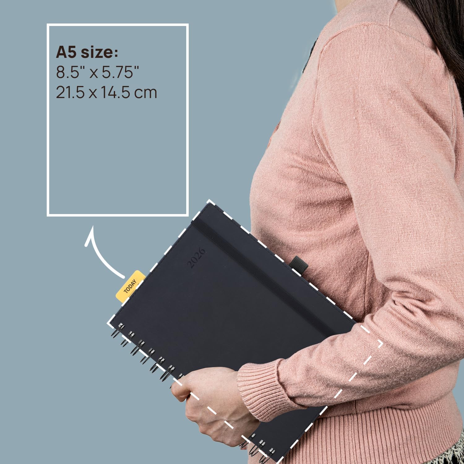 - A5 MEDIUM SIZE: The size of this 2026 daily planner is 6'' X 8.5'',slightly smaller than a flat panel,comfortable to carry and use,which makes your busy daily routines organized.
