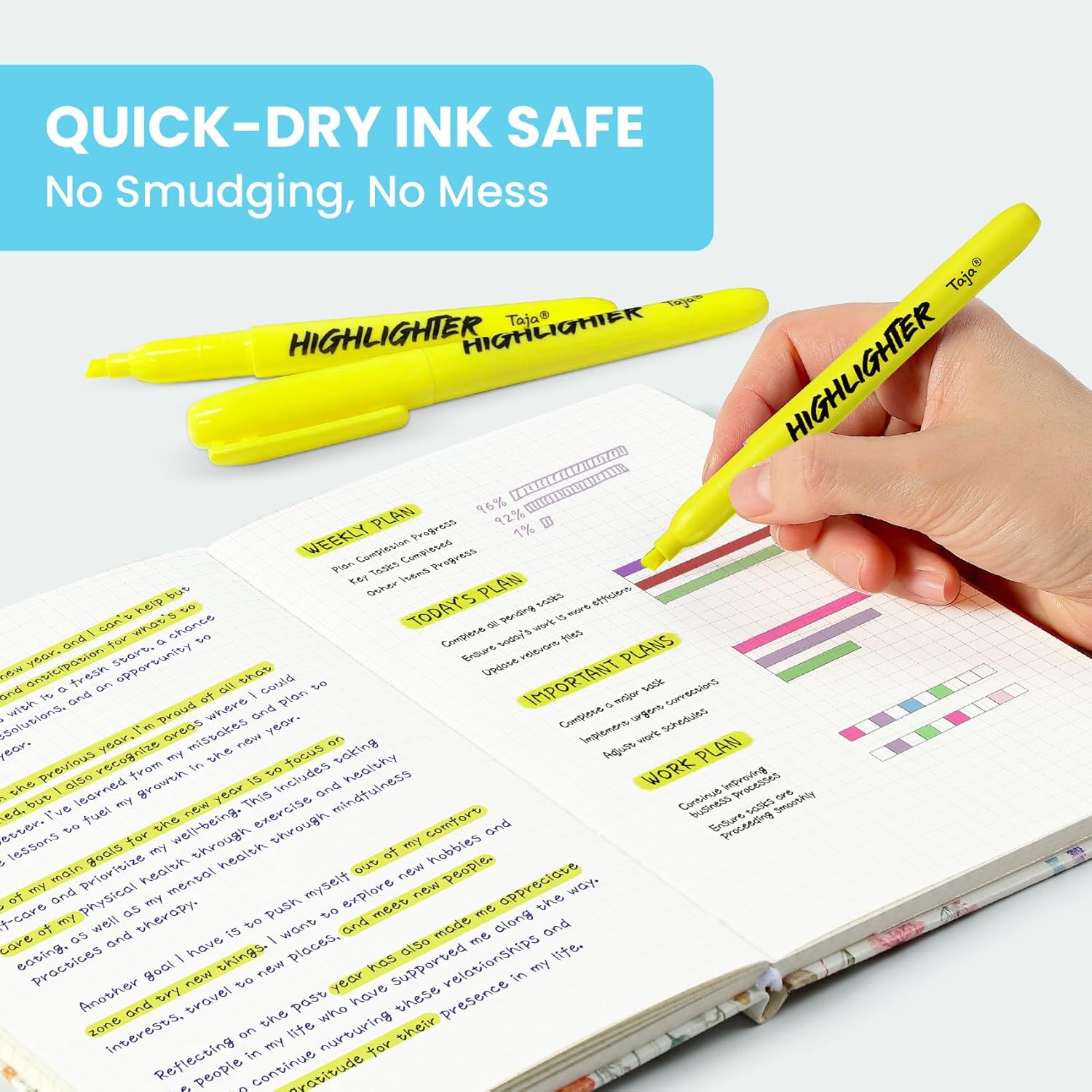 - No Bleed & Smear-Resistant Ink - Quick-drying ink ensures clean, crisp highlights without smudging or bleeding through pages. Great for double-sided printing, note-taking, and fast-paced studying.