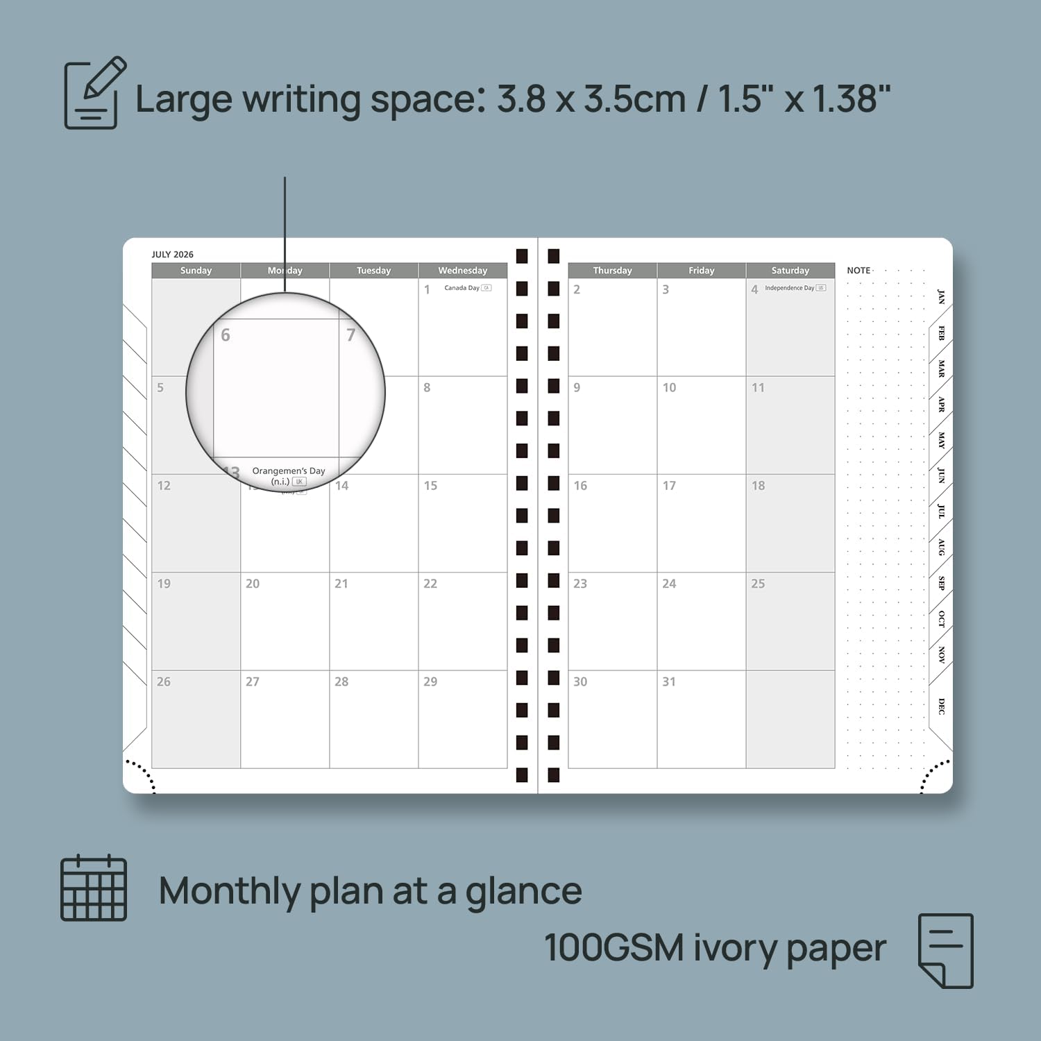 - EXTRA PAGES: This 2026 agenda book planner also contains "2026-2027 Yearly Overview" Page + "2026-2027 Holiday & Calendar" Page + 3 Contact Pages +1 Password Page +53 Horizontal line page + 7 Dotted Notes Pages for jotting down your ideas, thoughts or any other happy things in detail.
