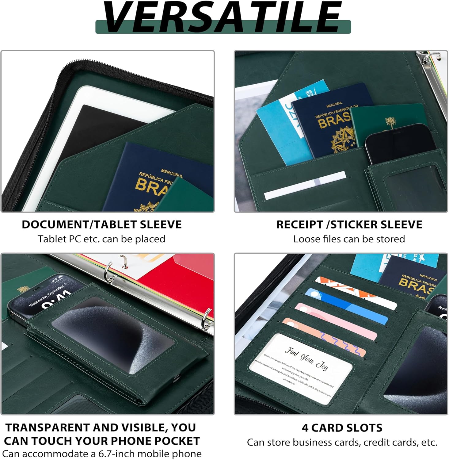 - Multifunctional Clipboard & Organizer Portfolio: Clipboard, Binder & Secure Storage! Seamlessly combine a sturdy clipboard (holds 80-100 sheets), a 1 inch 3 ring binder (fits 175+ papers), a zippered main compartment, and a dedicated tablet sleeve in one sleek leather portfolio. Never juggle separate tools again - manage documents, notes, devices, and essentials effortlessly