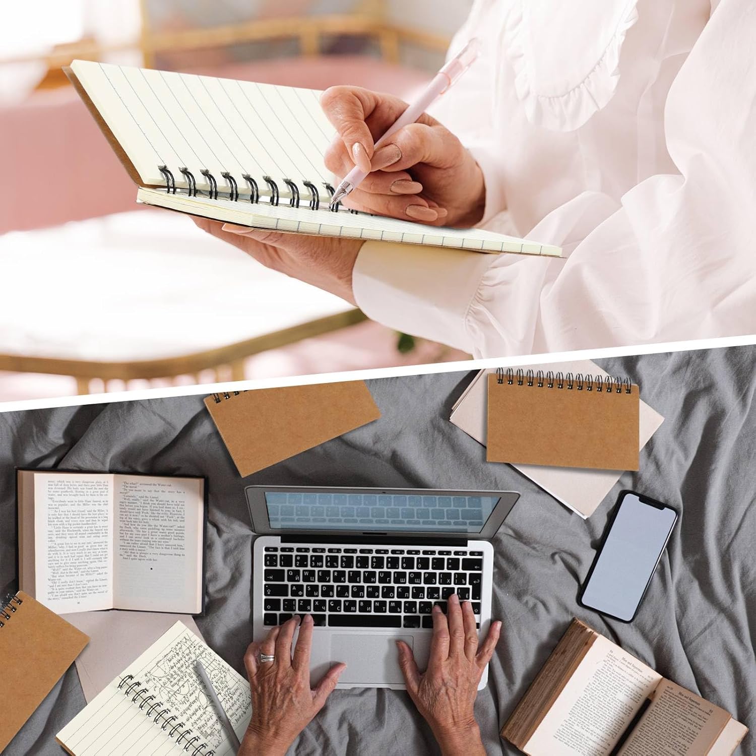 - Spiral Binding Design: our spiral notepad's pages can be laid completely flat 180 degrees, the spiral binding design is more beautiful and practical than ordinary notebooks, which is convenient for taking notes; Each book contains 120 pages (60 sheets of paper), and is soft and comfortable to touch, smooth to write, bringing you a good experience of using it