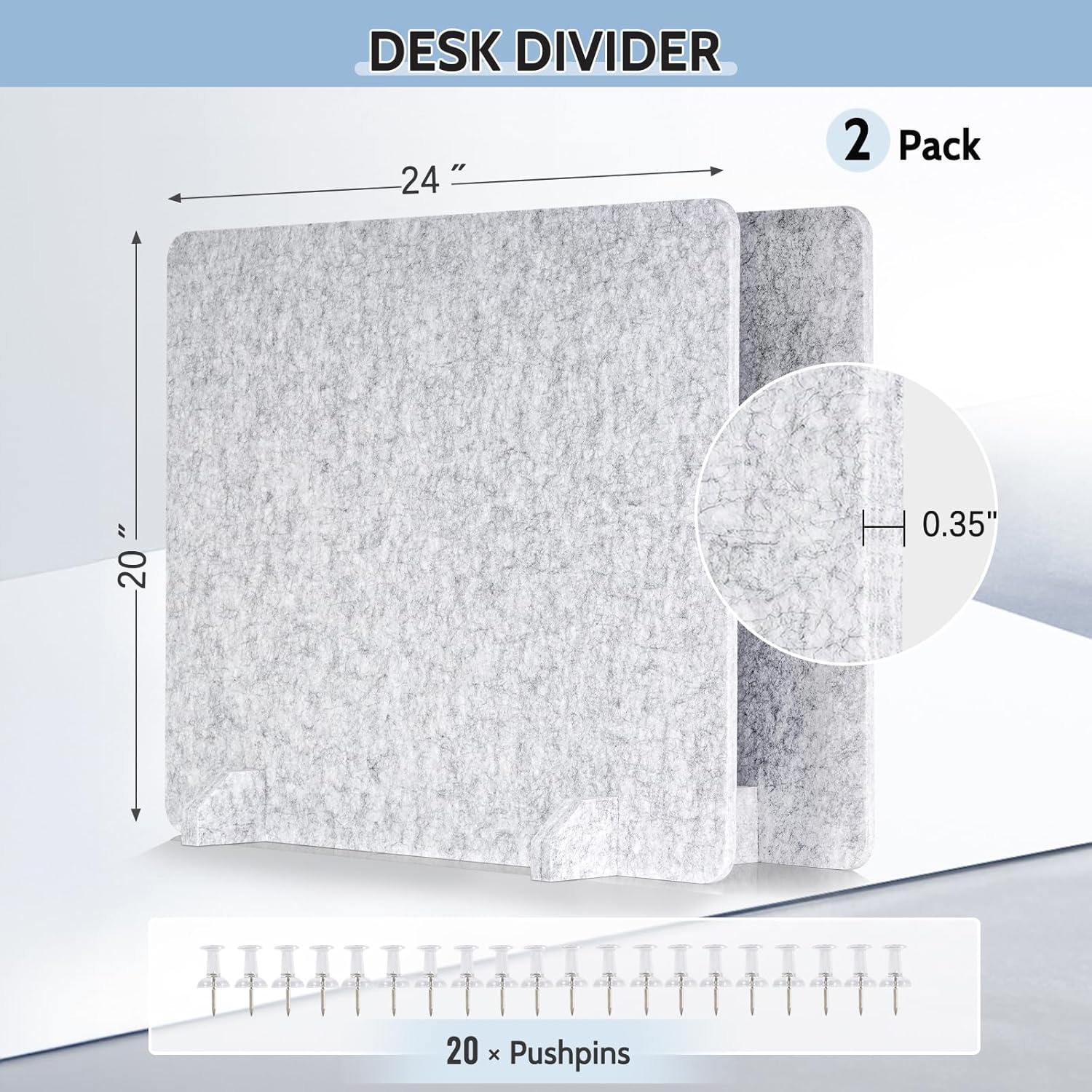 - 【Valuable Desk Divider Set】- Each set comes with 2 durable dividers, allowing you customize your workspace layout as you like. Additionally, it includes 20 pushpins, which are ideal for displaying picture cards, calendars, keepsakes, messages, reminders, and notes