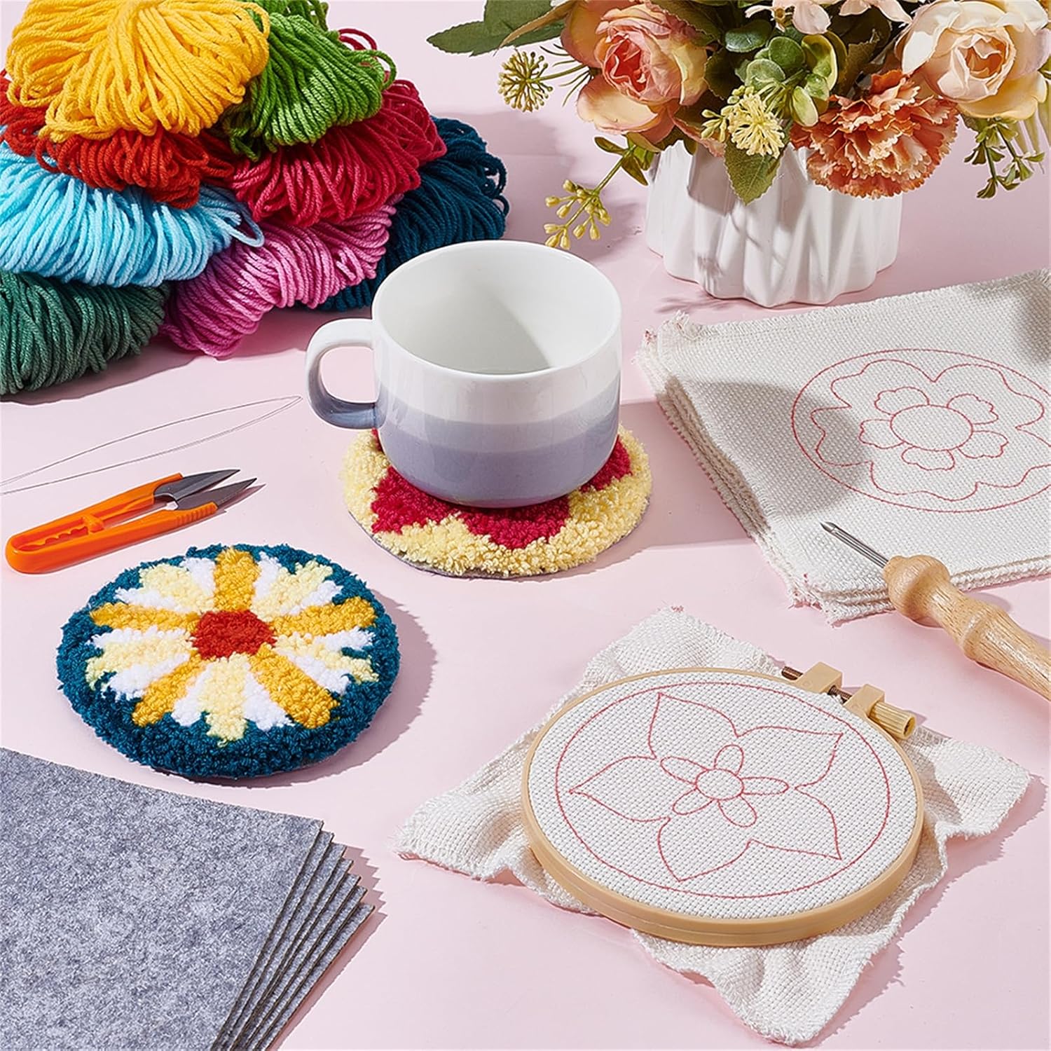 - 【Complete Punch Needle Kit】Our punch needle coaster kit includes pre-printed cloth with 8 floral designs, 1 x adjustable hoops, 8 x punch needle fabric pieces, 1 x instructions, 1 punch needle, 1 x scissor, 1 x needle-threading tool, and 10 high-quality yarn. This embroidery kit beginner provides everything you need to master the craft and bring your creative visions to life.