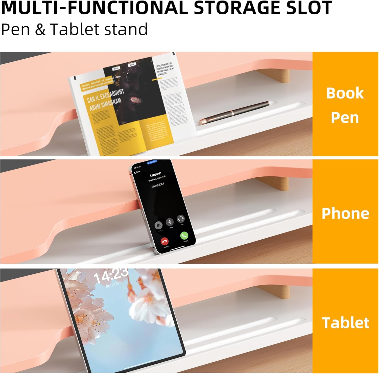 - Multi-functional Slots:There are multi - functional storage slots on the riser. You can put small things like your mobile phone, tablet, or pens in these slots. They keep your small items organized and easy to reach. This way, your desktop stays tidy, and you can find what you need quickly, making your work and study more convenient.