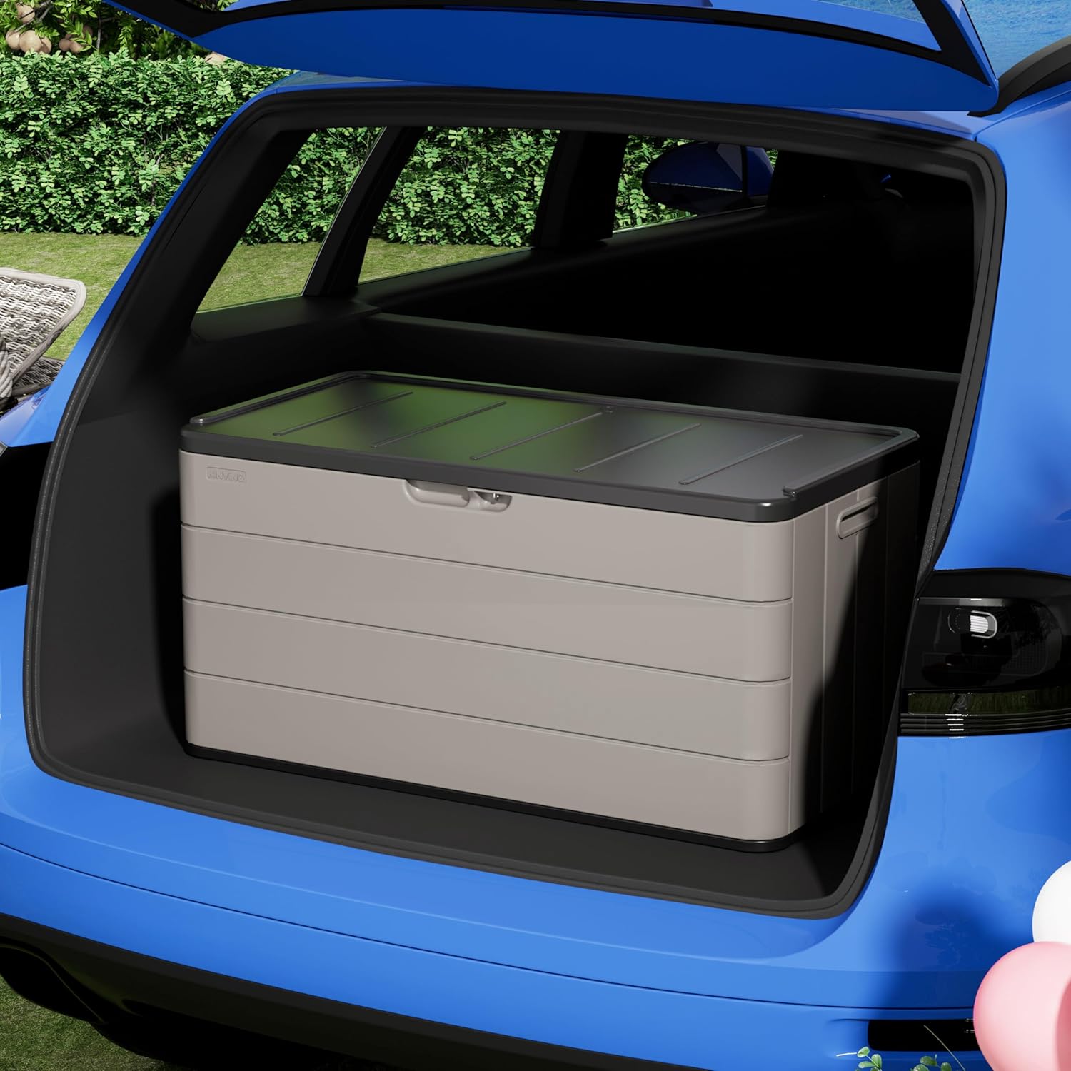 - Portable Design with Secure Locking For added security, our deck box features lockable latches, allowing you to safeguard your valuables with ease. Additionally, the built-in side handles make it easy to move the box, even if you're handling it alone. Whether you need to rearrange your patio or take it on the go, the combination of security and portability makes this deck box ideal for outdoor use.