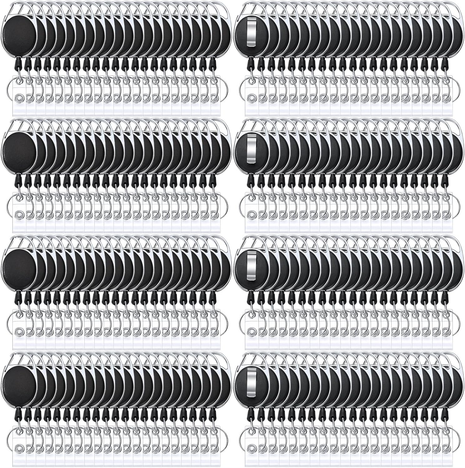 - Package: you will get 170 packs of retractable badge clips, featuring clip, stainless steel key ring, vinyl snap strap and plastic cover, clip attachment for effortlessly and quickly fastening to belt loops, straps, backpacks, bags and more, allow a quick and easy way to scan or swipe your badge