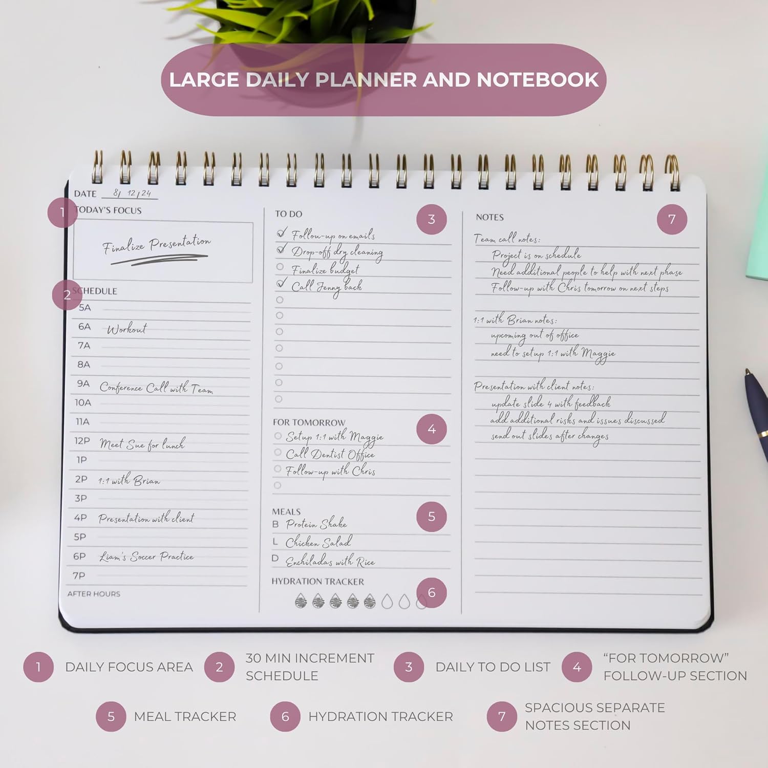 - Versatile Day Planner: Our durable and sleek day planner combines a daily planner, weekly planner, and notebook in one, offering a versatile solution for all your organizing needs. Available in multiple colors and layouts, it measures 8" x 11.5" and is an essential desk supply for women office aesthetic.