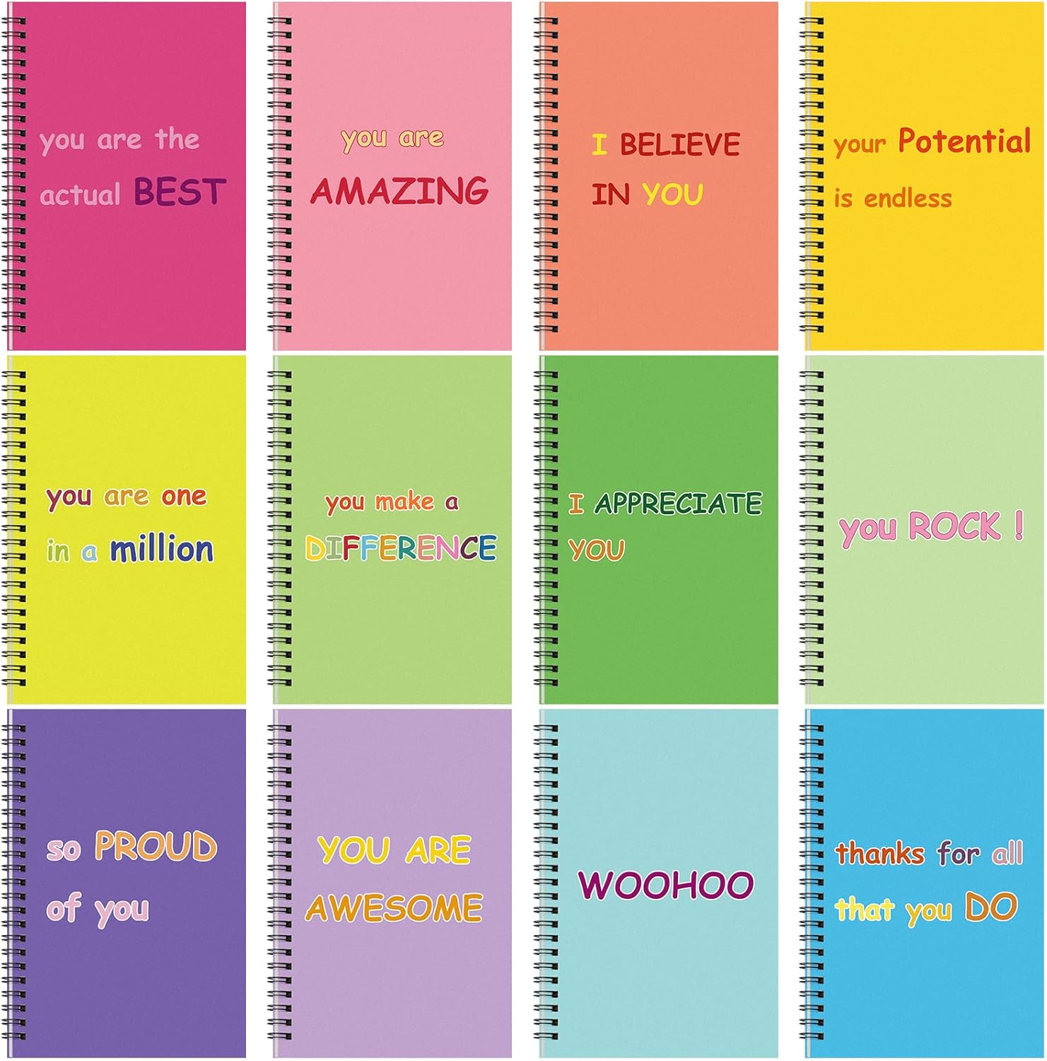 - Rich in Quantity to Use: the package comes with 12 pieces of spiral notebooks in A5 size, each measures about 8.3 x 5.7 inches, enough to meet your daily work and study needs; There are 12 different color covers, simple and fashionable, rich colors add fun to your study and work