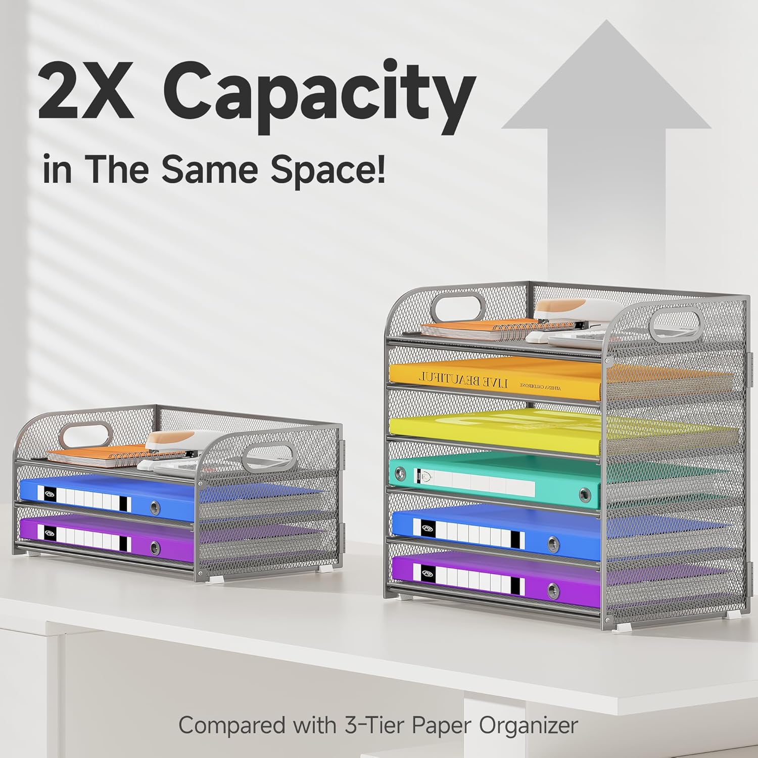 - 【EFFICIENT DESK ORGANIZER】Keep your desk tidy and clutter-free with our 6-Tier Paper Organizer with Handle. This file organizer provides ample space for sorting and storing papers, letters, documents, folders, books, magzines, staplers, caculators and sticky notes.