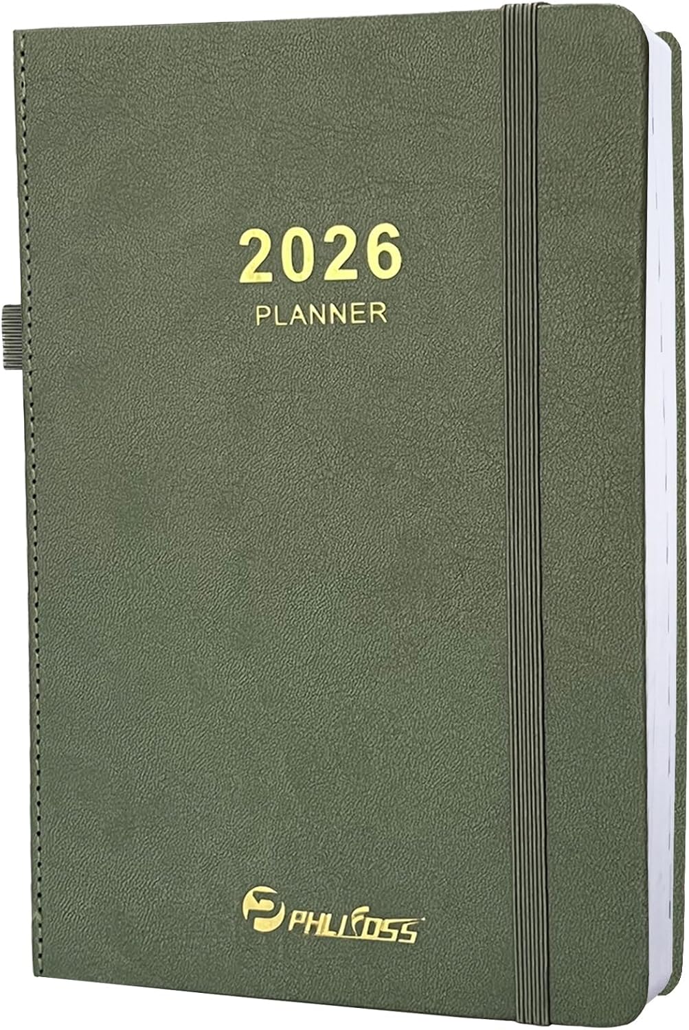 2026 Daily Planner/Calendar, One Page Per Day, Daily Monthly Agenda Planner with Time Slots and Monthly Tabs, Jan - Dec 2026, 5.7" x 8.25" Appointment Book, Pen Holder, Leather Cover (2026-Green)