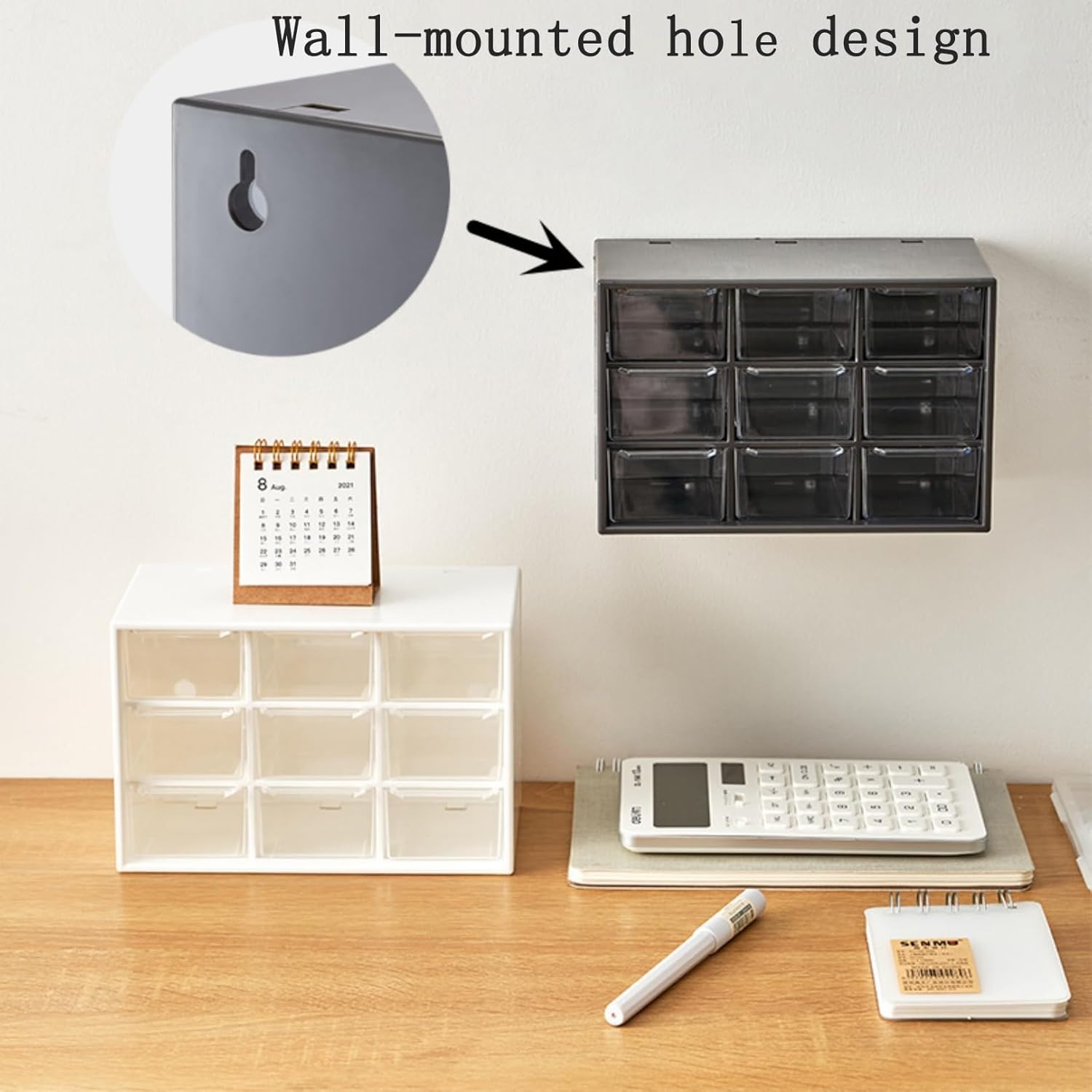 - 【Product Details】Sturdy plastic with 9 transparent drawers, the drawers can open independently and removable, Plastic organizer box is can be mounted on wall