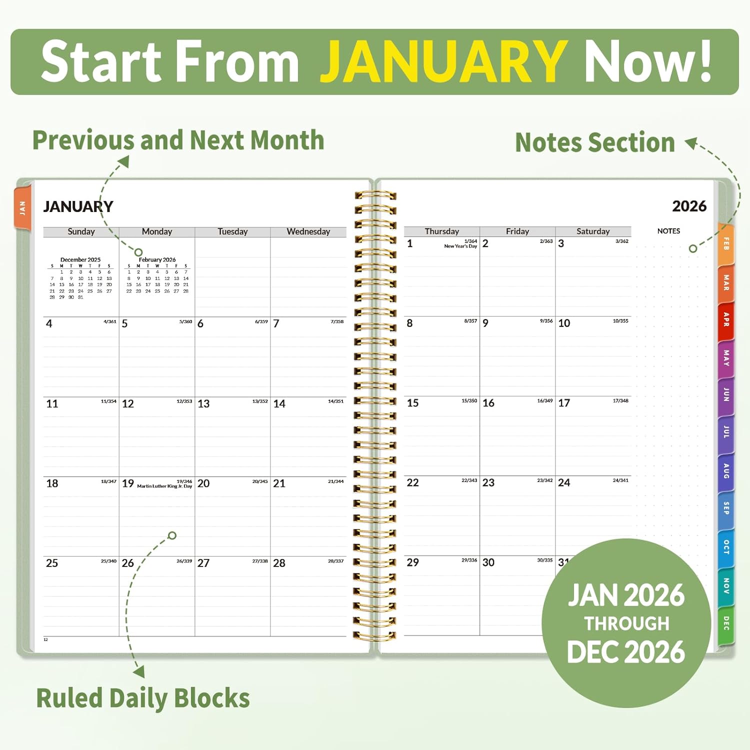 SUNEE 2026 Appointment Book, Quarter-Hourly, Weekly & Monthly - from January 2026 - December 2026, 8.5"x11" Weekly Planner, Flexible Cover, Note Pages, Pockets, Bookmark, Spiral Binding, Green