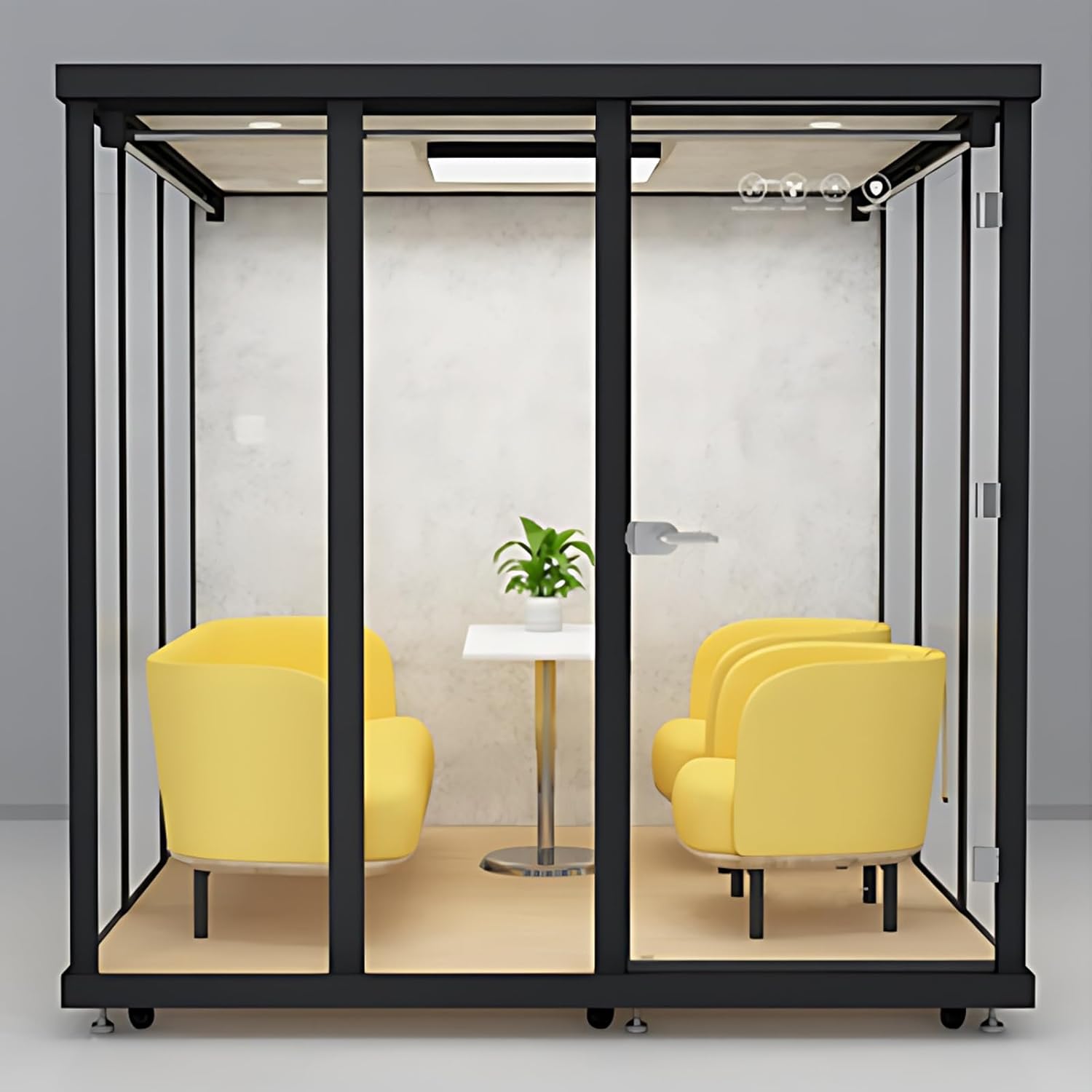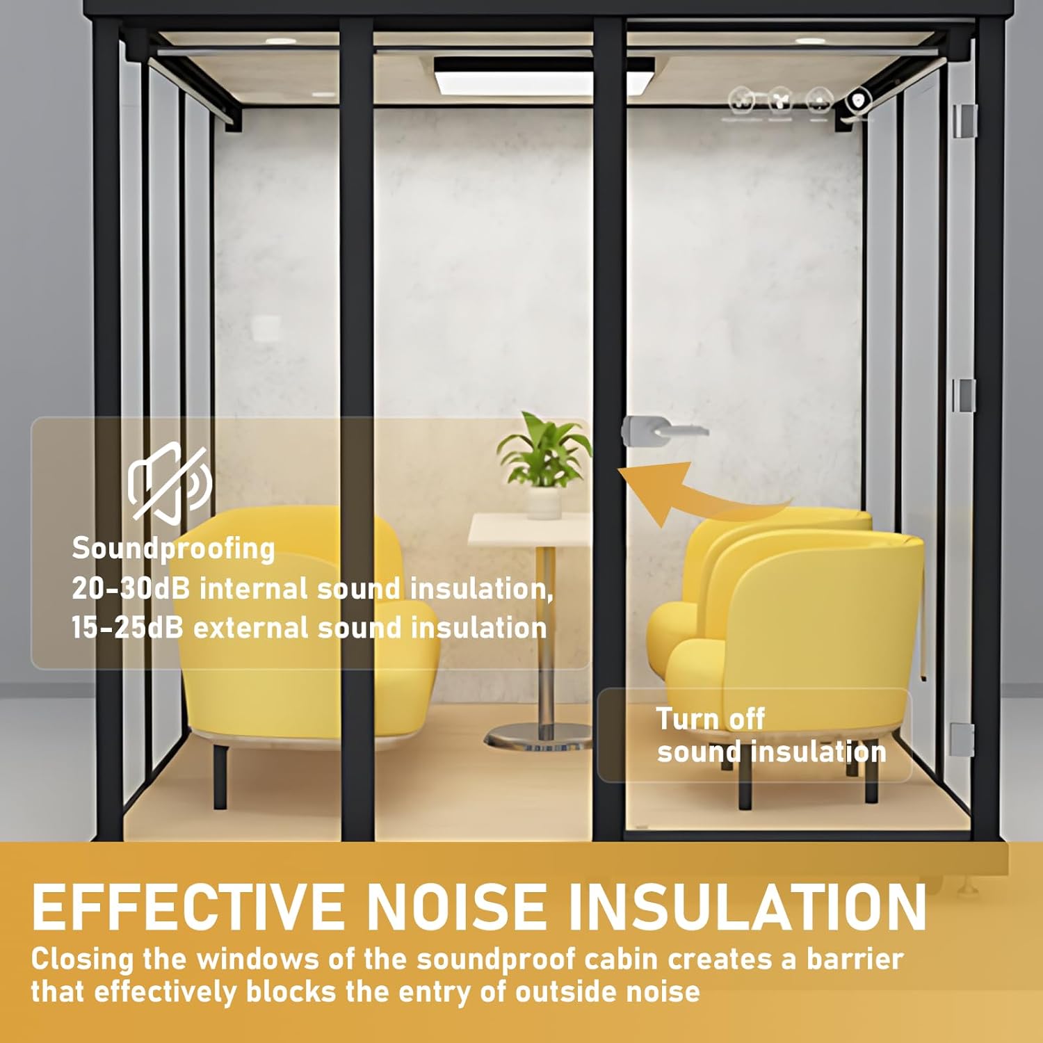 - Excellent Soundproof Structure: The cabin is made of durable sheet metal, the surface is painted with high temperature, and matched with thick tempered glass panels. High-density sound-absorbing felt is also integrated inside to ensure sound insulation