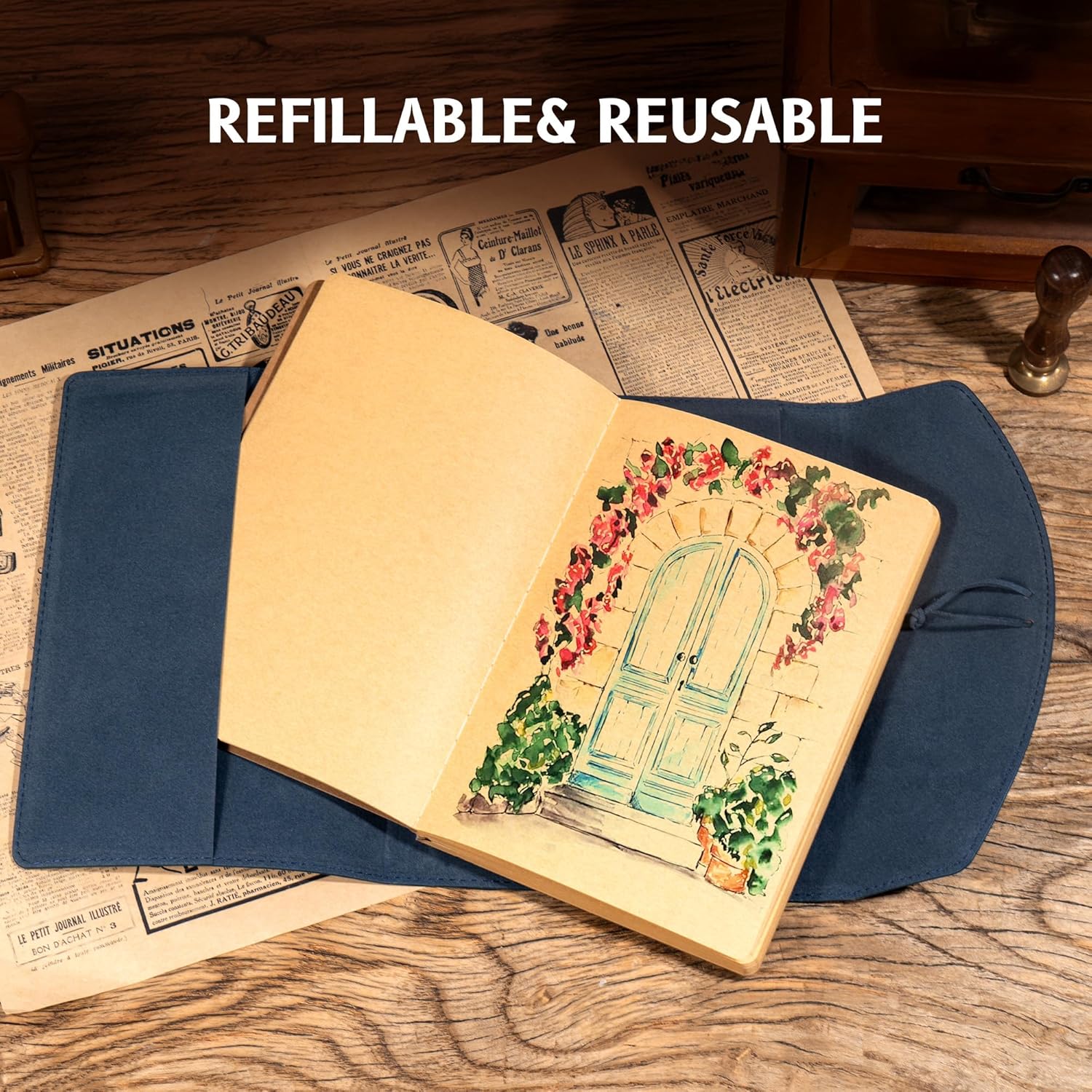 - REFILLABLE& REUSABLE: Unique fillable design, you can fill it with fresh paper to begin a new adventure! Reusable as a travel journal, junk journal, book of shadows, artist's sketchbook, a beautiful drawing/painting journal, writing diary.