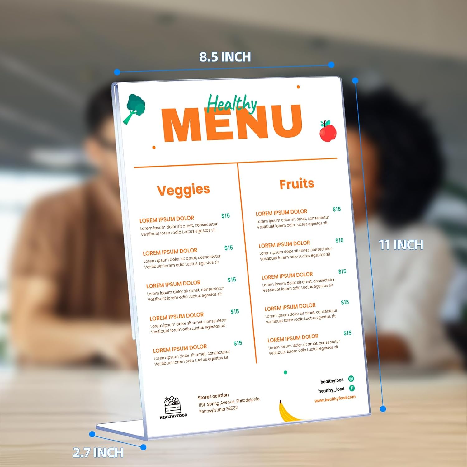 - Clear Acrylic Stand for Table Versatile Self-Standing Design: Effortlessly display 8.5β x 11β signage on tabletops with the sturdy L-shape baseβideal for offices, restaurants, stores, or events. No assembly required!