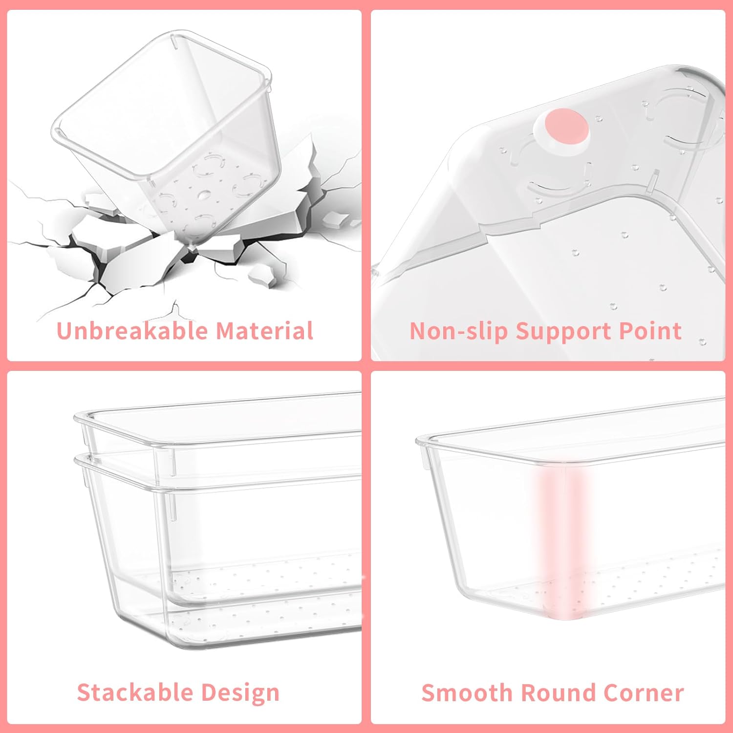 - Sturdy Material: Made of premium flexible plastic, the storage bins is sturdy and durable to use. It is not only lightweight but also can be reused indefinitely. The clear design makes it easy to find items in the drawer and saves searching time