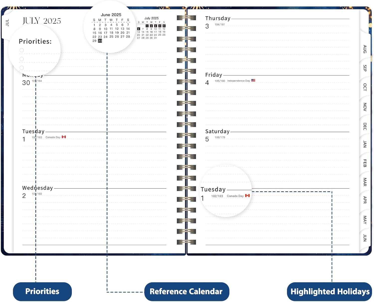 - [COMPREHENSIVE PLANNING] β This Planner 2025-2026 covers12 months from July 2025 to June 2026. It includes monthly and weekly calendar pages, providing ample room to track exams, meetings and important events - making it a useful organizational tool for your entire academic or work year.