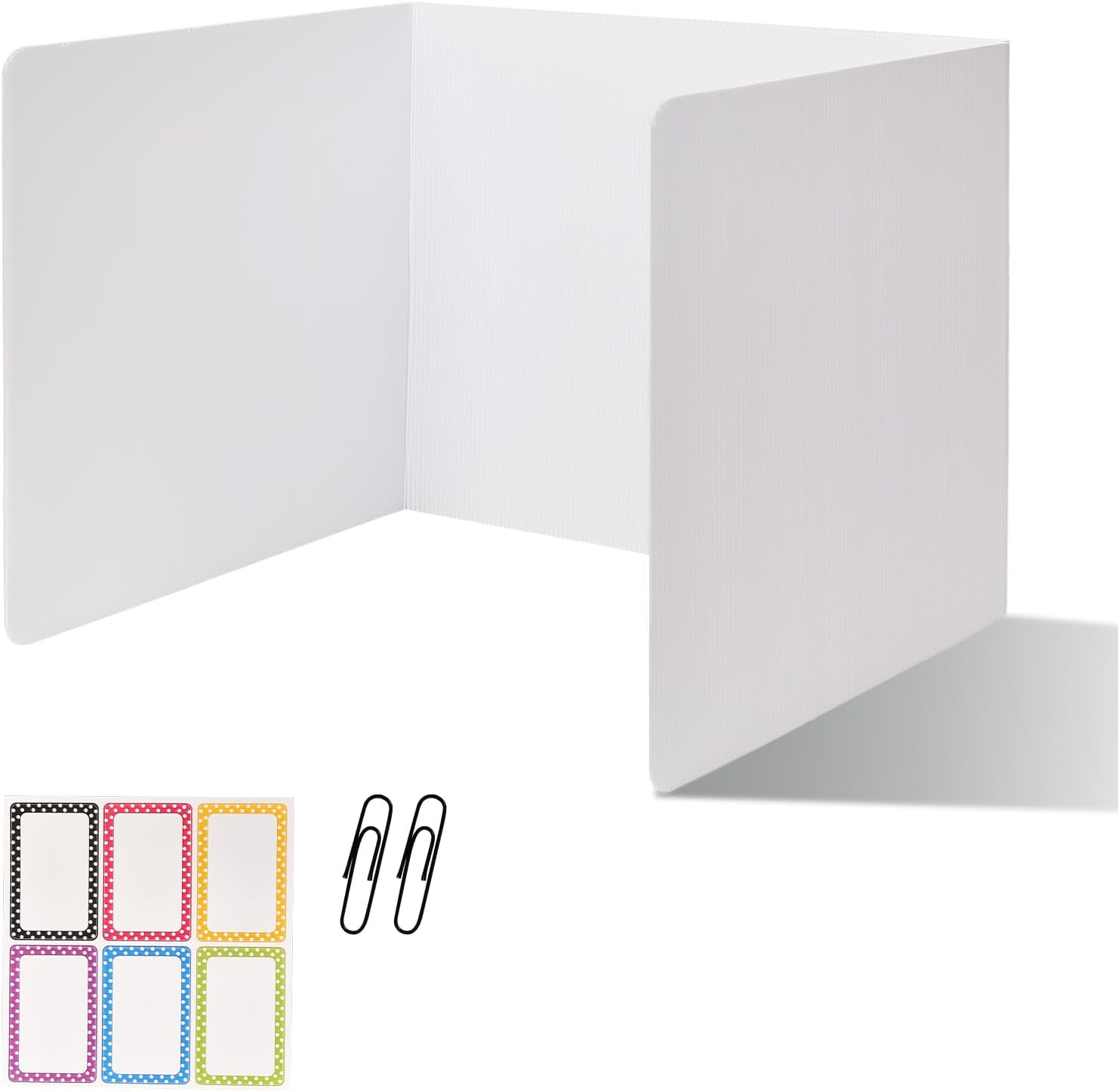 2 Pack Desk Dividers for Students,3-Fold Privacy Screens,Testing Dividers for Classroom Waterproof,Plastic Easy Clean Privacy Shields for Student Includes Extra Labels