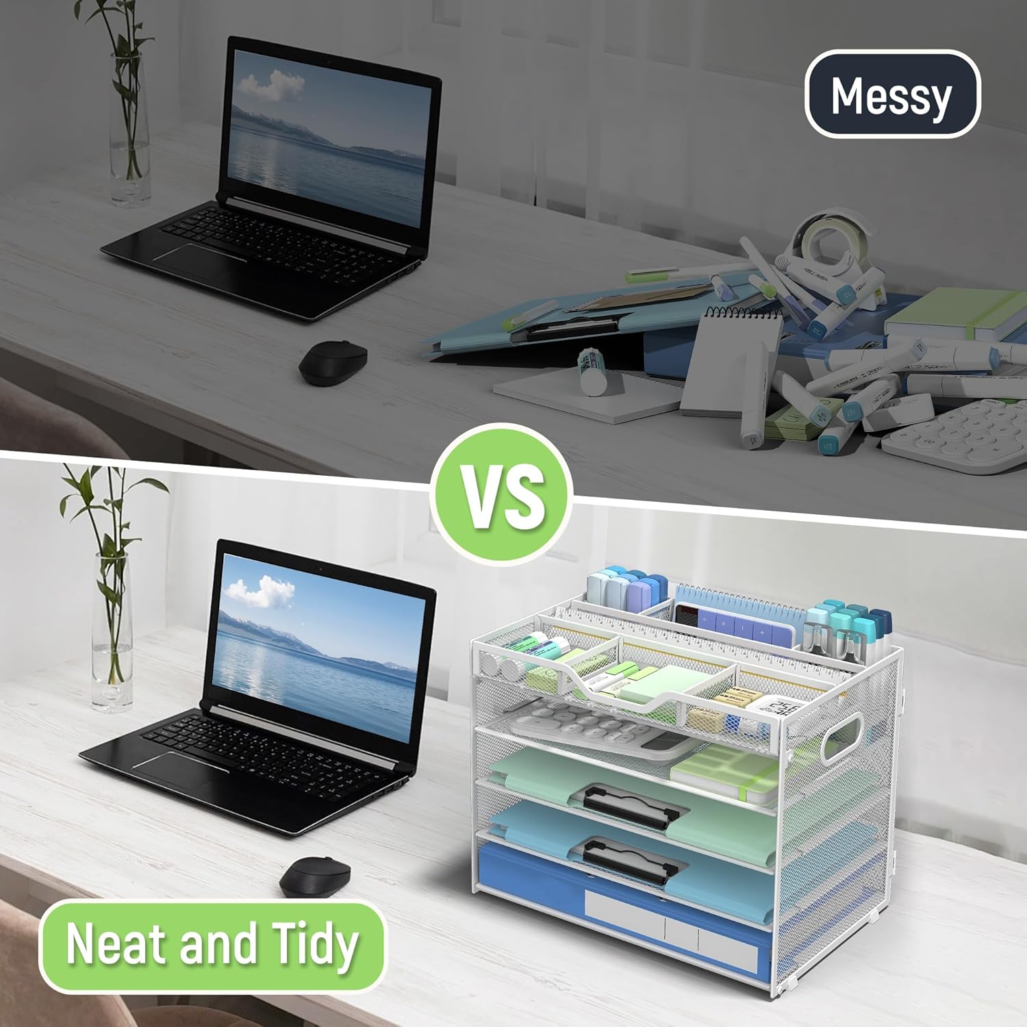 - Low-Maintenance, Easy to Clean-The smooth powder-coated surface of this professional office desk organizer resists dust and stains—simply wipe with a damp cloth for spotless upkeep. Ideal for busy offices, classrooms, or home workspaces where desk organization and hygiene matter most. The perfect paper organizer for desk among your essential office supplies