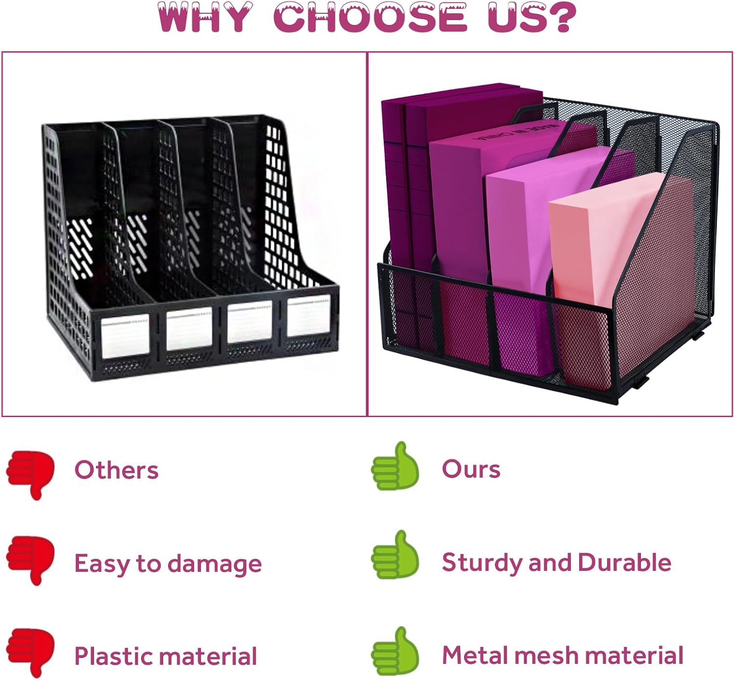 - 📚Improve Work Efficiency: It owns 4 vertical compartments. Our file organizer is enough to complete the tidy of desktop documents and maximize the utilization of space
