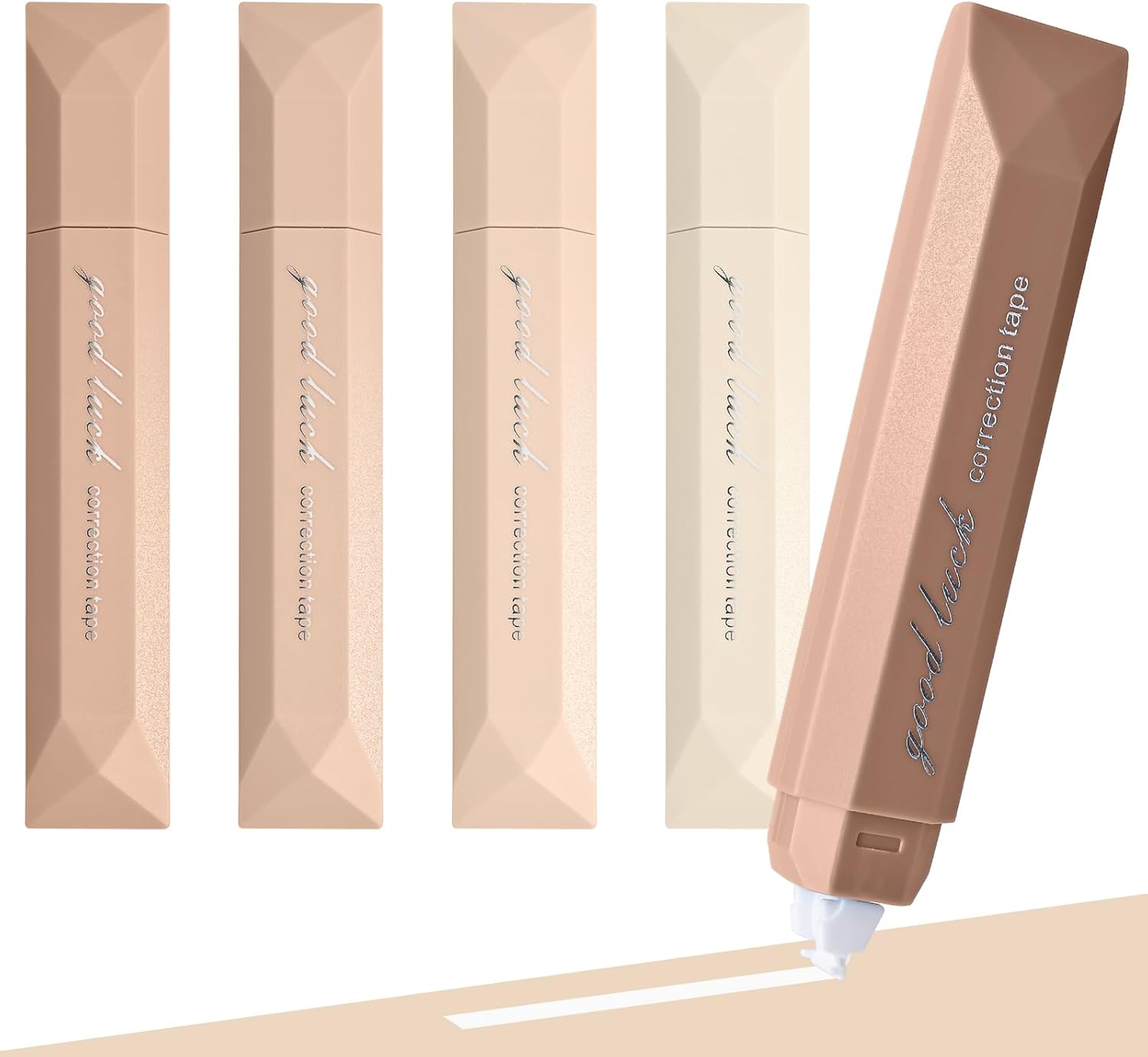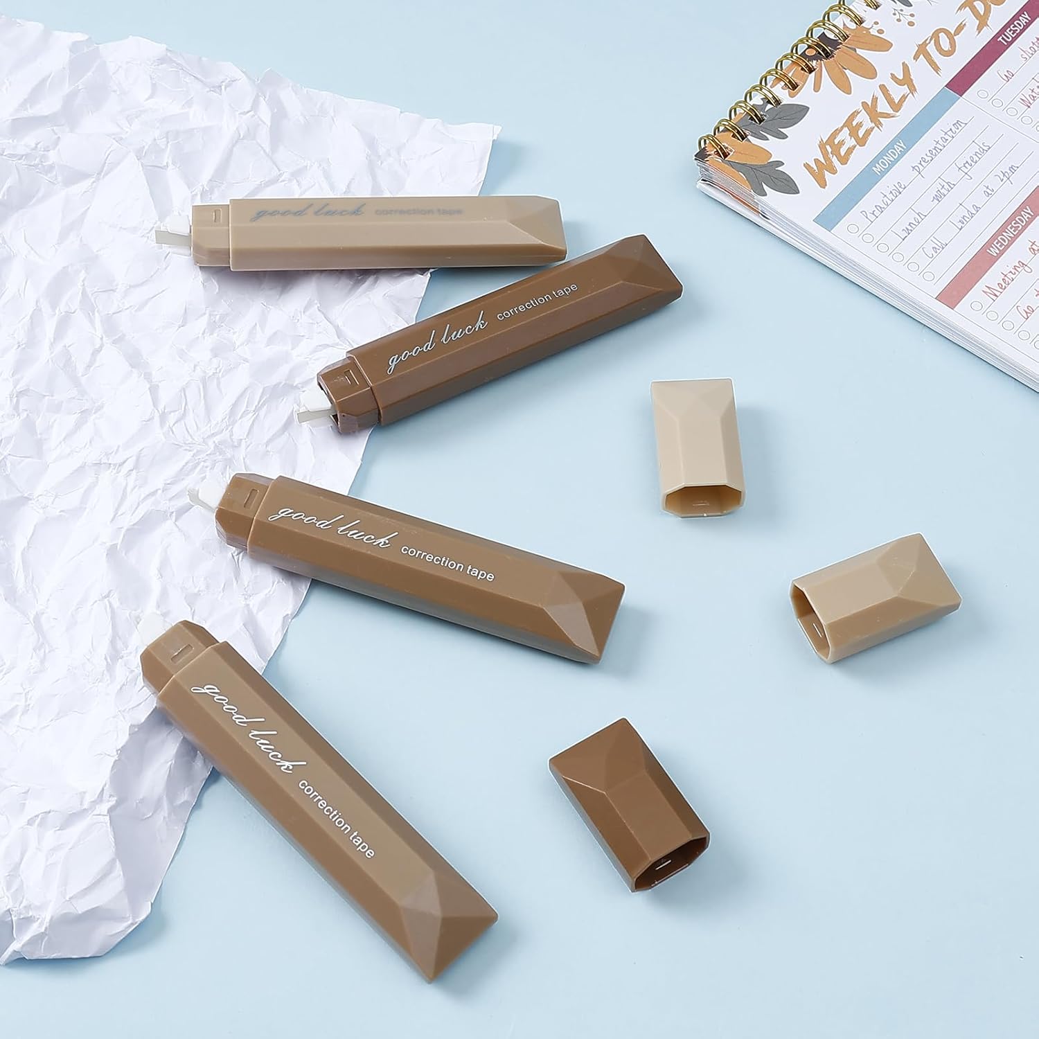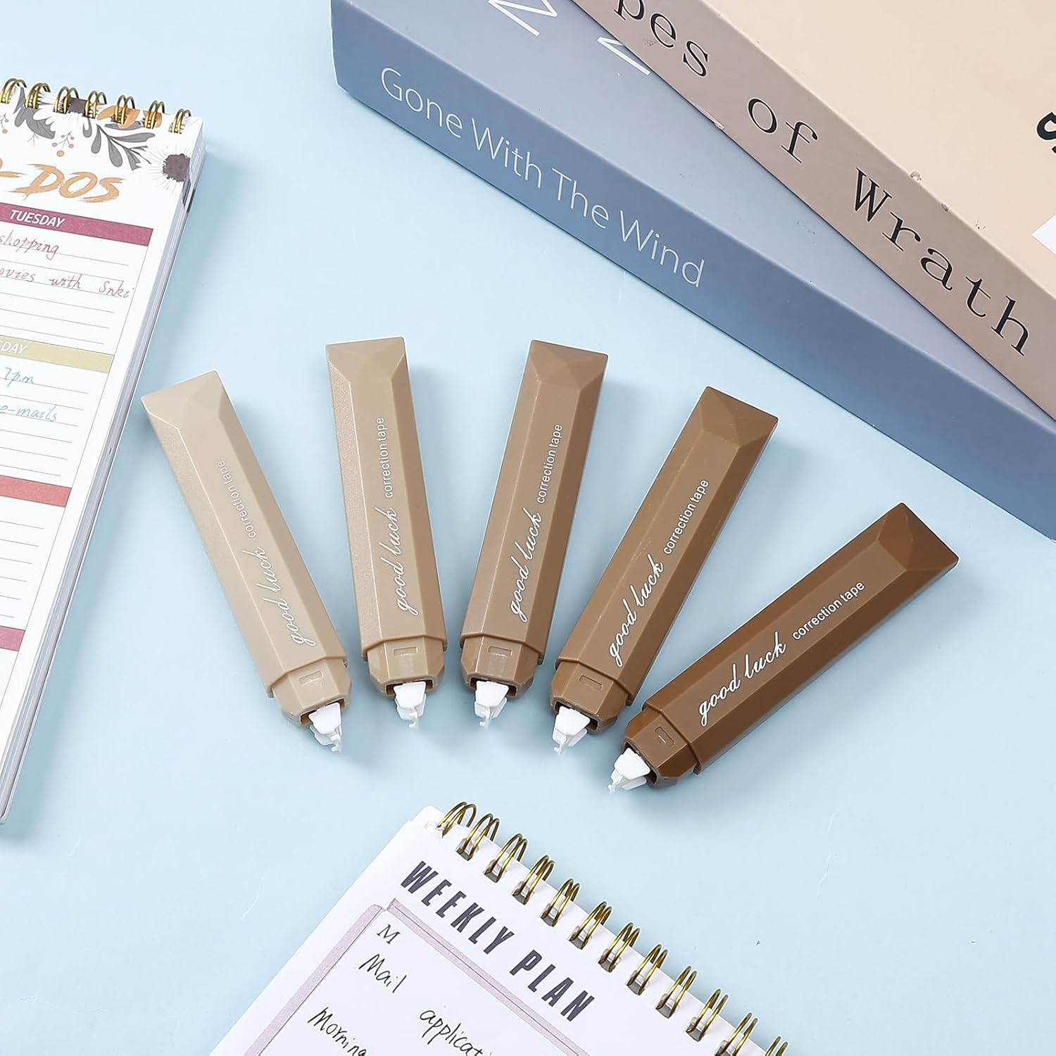 Temiary 5 Pcs White Correction Tapes, Aesthetic Correction Tape Pens Smooth Pull Out, Easy to Use Pen Shaped Applicator for Students School Office Supplies (Coffee)