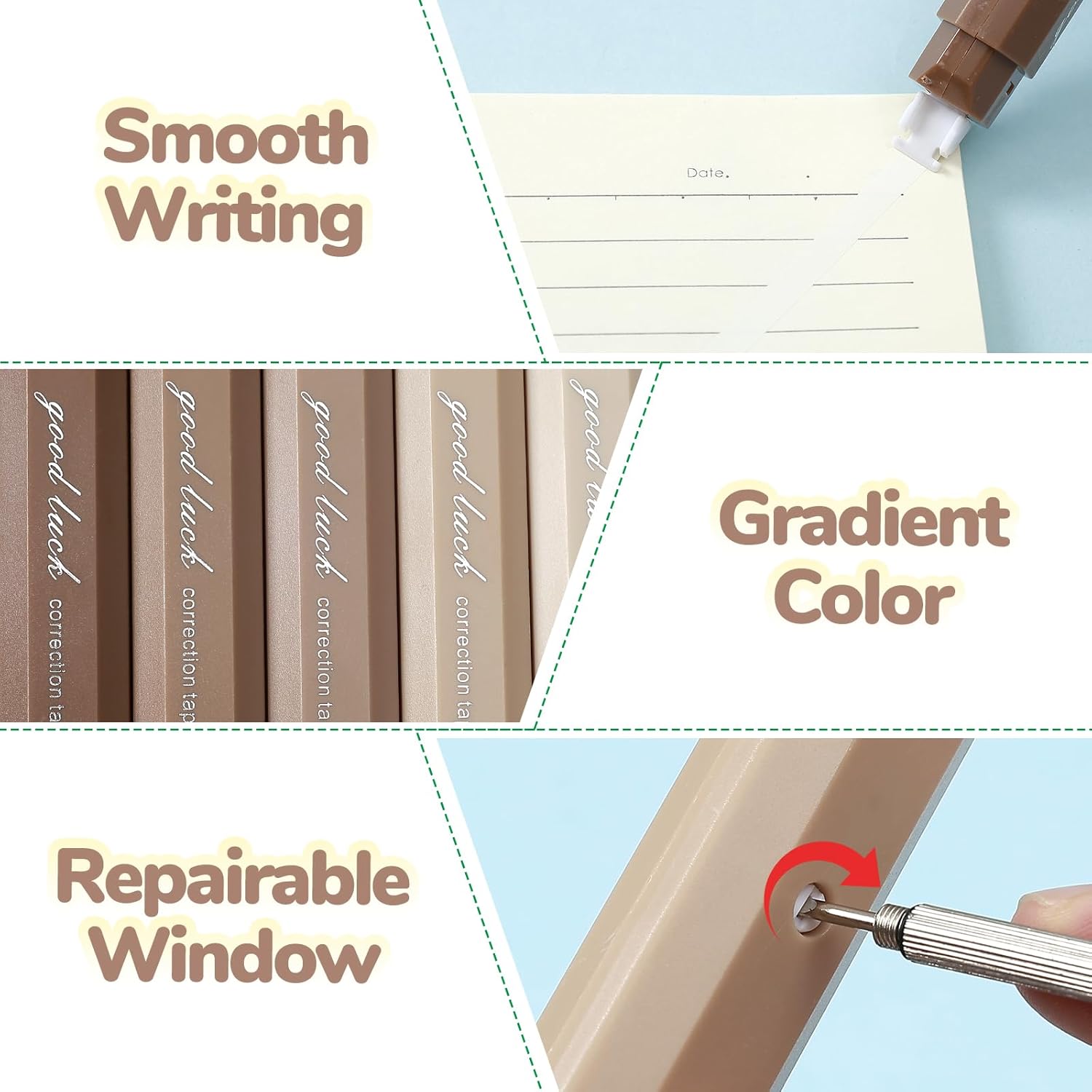 - Versatile Applications: These cute white correction out tapes can apply to gel pens, marker pens, ballpoint pens, pens, etc. They are well served as school supplies and office supplies. The gradient color makes it a great present for your family and friends