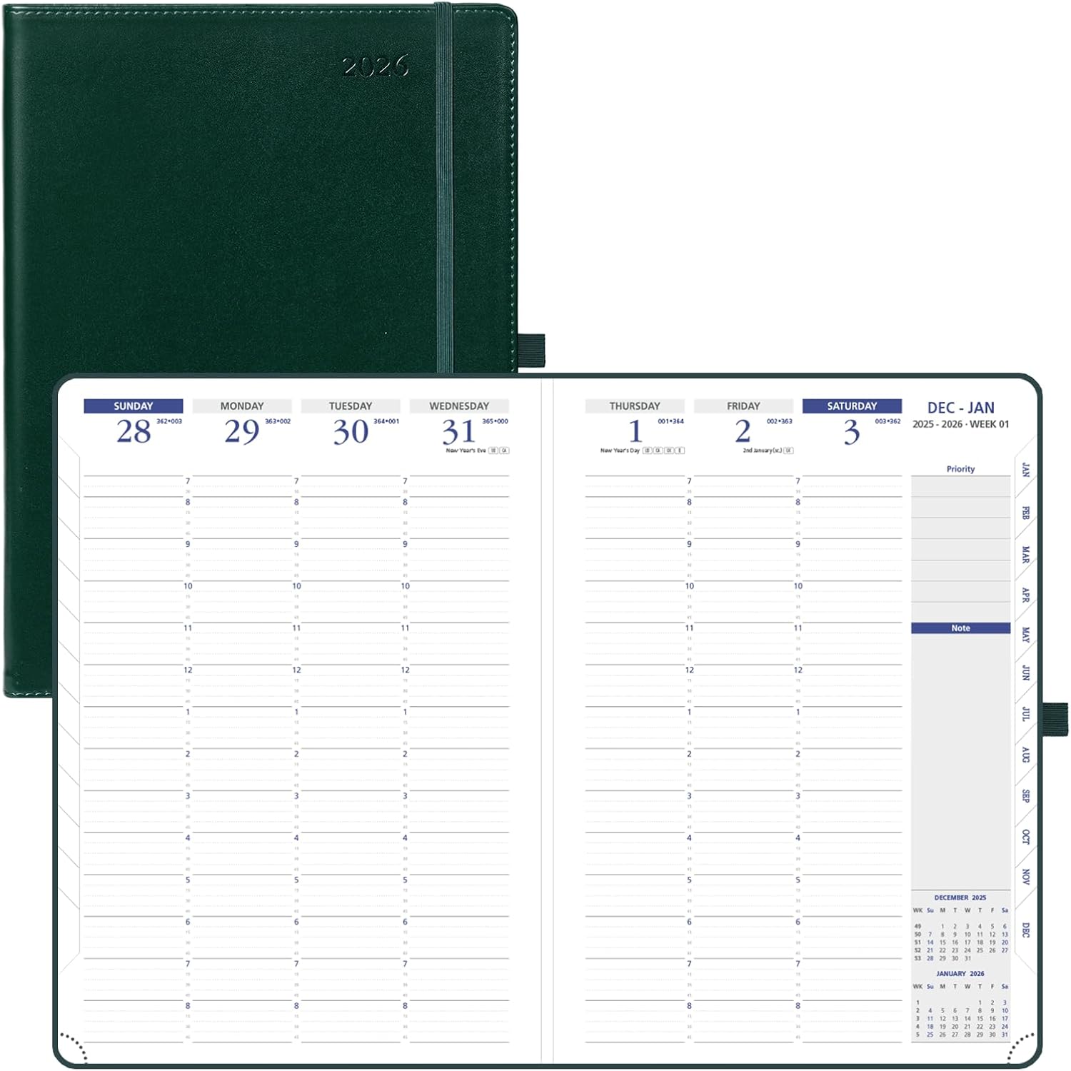 - JAN 2026 - DEC 2026 WEEKLY PLANNER: This appointment planner covers 12 months of 2026 so that you can track the whole year's schedule easily. The size is large - 8.25'' X 11.75'', which permits large writting space, making your busy daily routines stay organized.