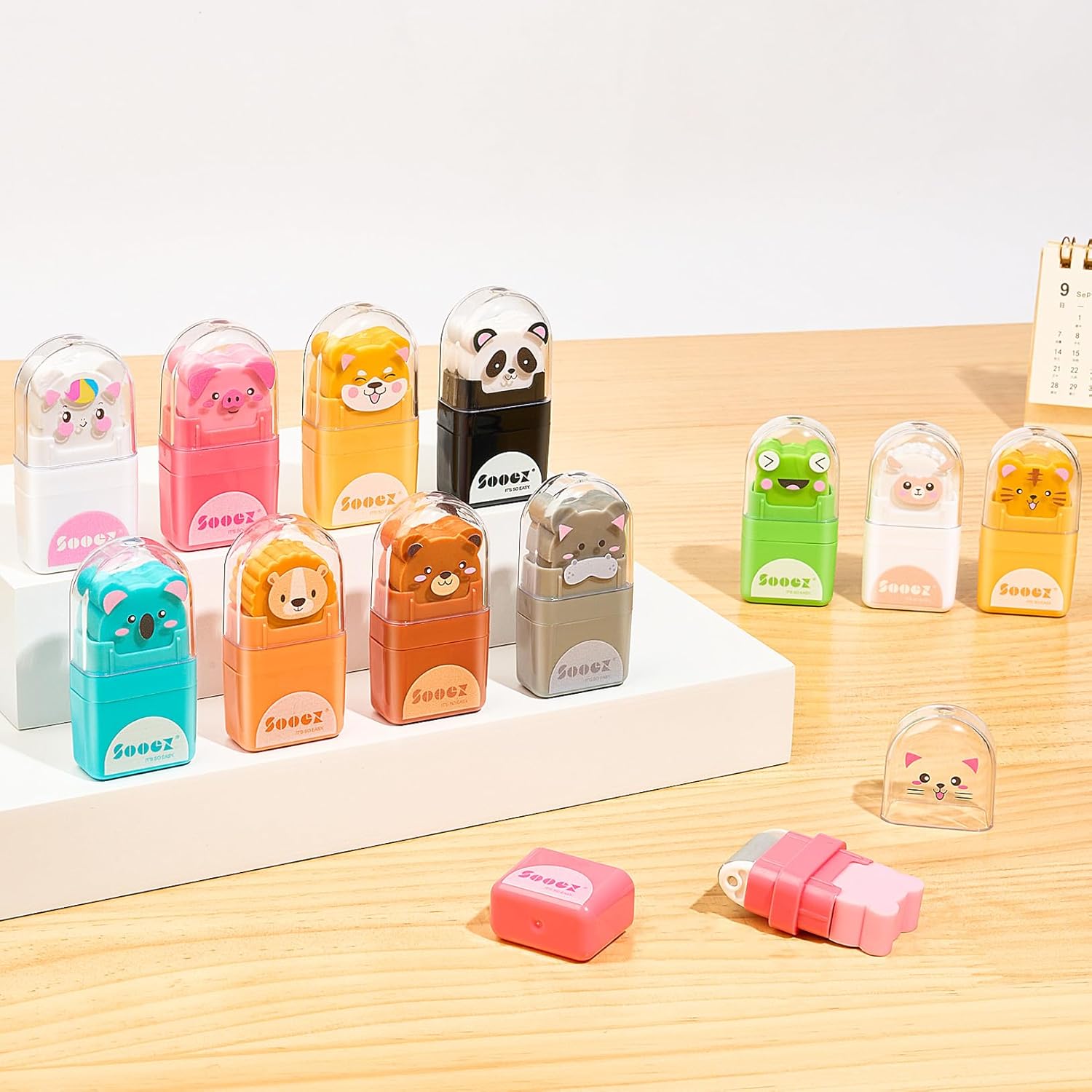 - 12 Pieces Erasers with Animal Patterns: Roller eraser comes in a delightful array of cartoon animal designs -koala, panda, sheep, lion, cat, bear and so on, each with its own vibrant color. Animal erasers make learning and creativity a joy, capturing the attention of them and adults alike