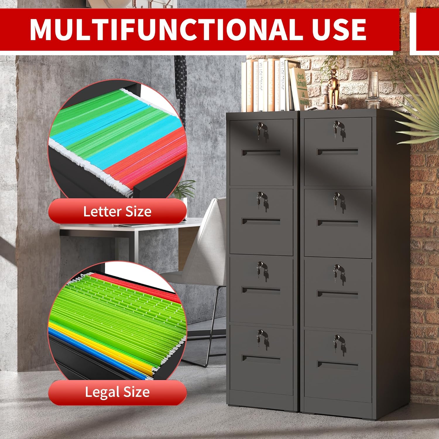 4 Drawer Metal File Cabinet with 4 Unique Locks Heavy Duty Locking File Cabinets Home Office Steel Filing Cabinet Vertical File Cabinets for Legal/Letter Size File,Assembly Required