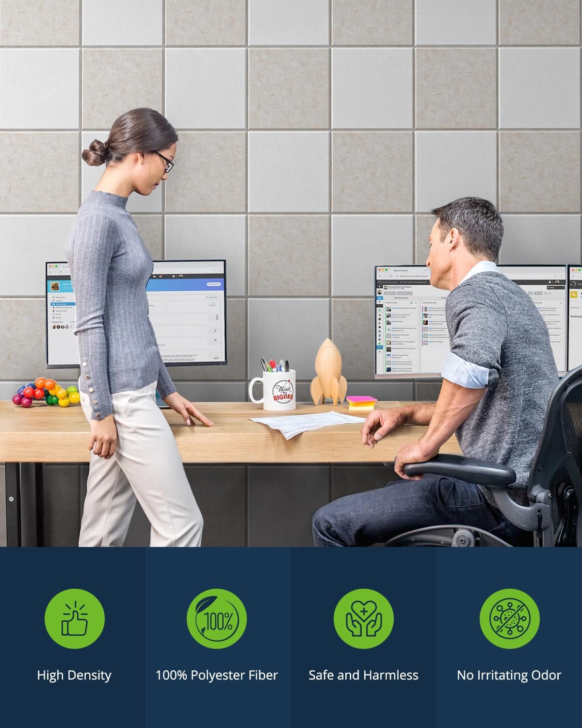 12 Pack Acoustic Panels Sound Absorbing 12"X12"X0.4" Self-adhesive Acoustic Panels High Density Sound Proof Panels for Walls, Door And Ceiling Beige