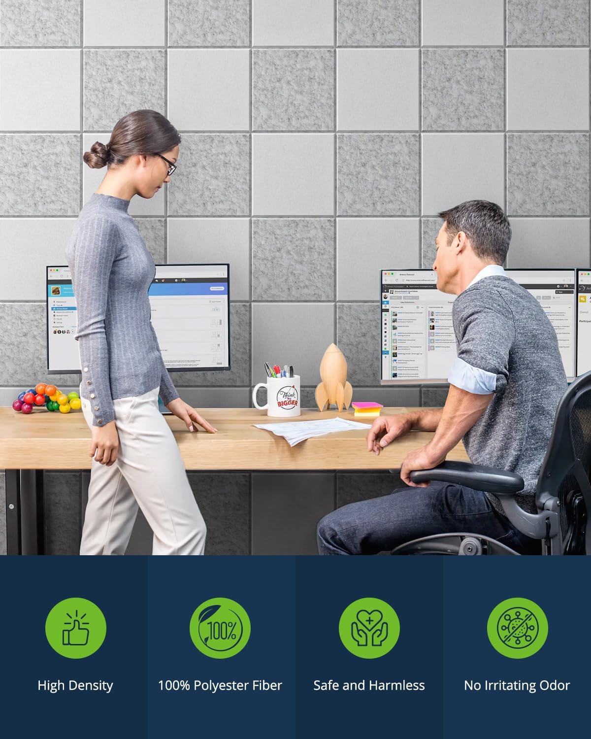 12 Pack Acoustic Panels Sound Absorbing 12"X12"X0.4" Self-adhesive Acoustic Panels High Density Sound Proof Panels for Walls, Door And Ceiling Gray