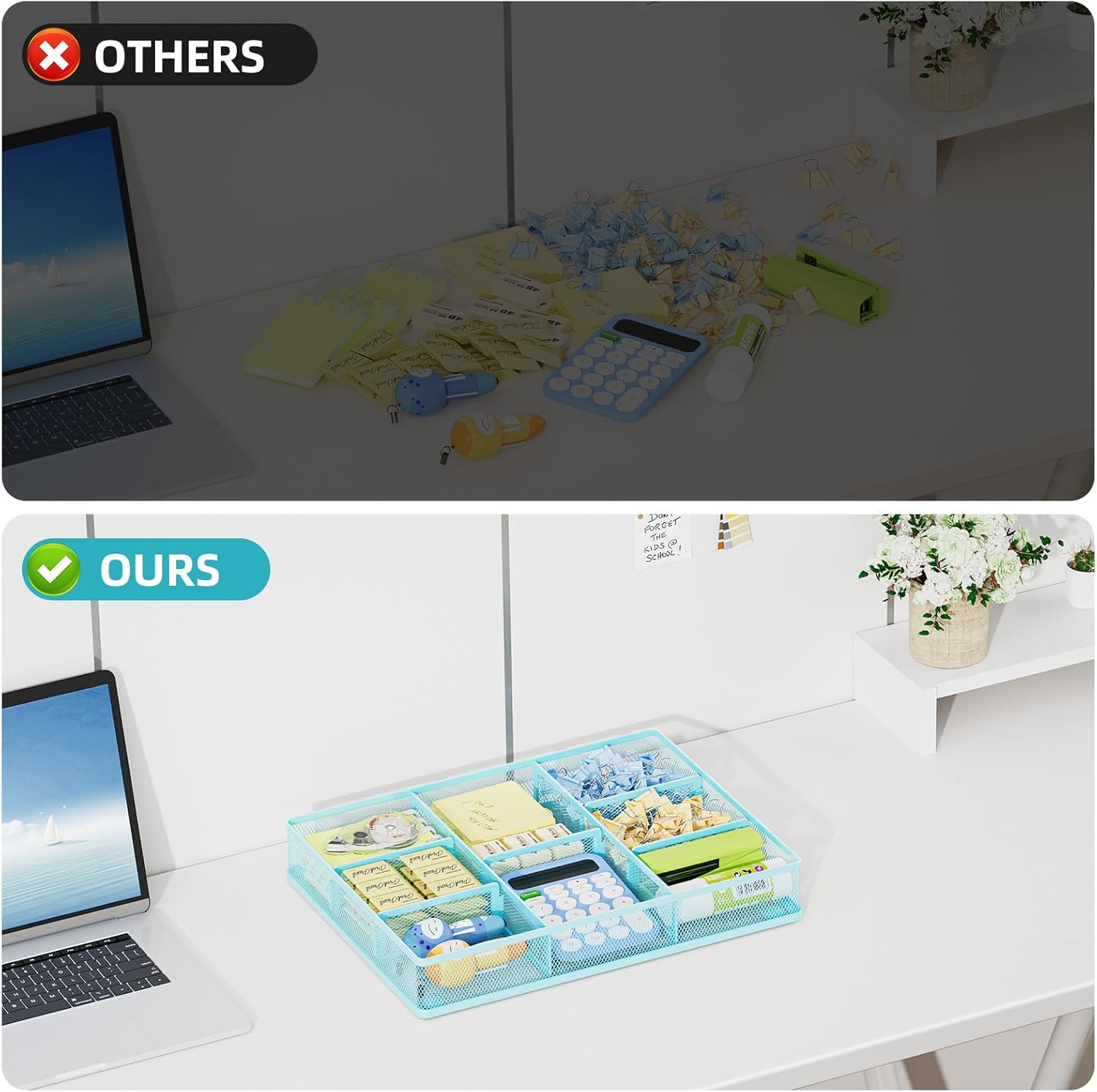 - Sturdy and Durable: Made of strong wire mesh with a powder-coated finish that is smooth, corrosion-resistant, and built to last. Non-slip feet keep the organizer stable and in place.This practical desk drawer organizer also makes a perfect gift for your family and friends.