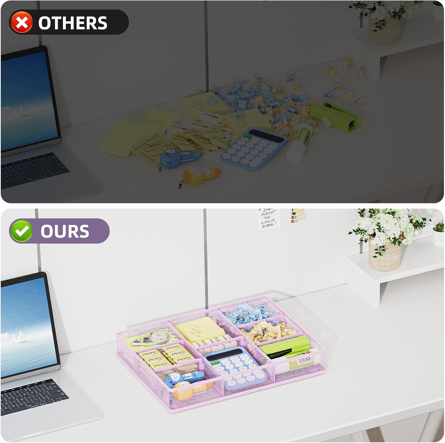 - Sturdy and Durable: Made of strong wire mesh with a powder-coated finish that is smooth, corrosion-resistant, and built to last. Non-slip feet keep the organizer stable and in place.This practical desk drawer organizer also makes a perfect gift for your family and friends.