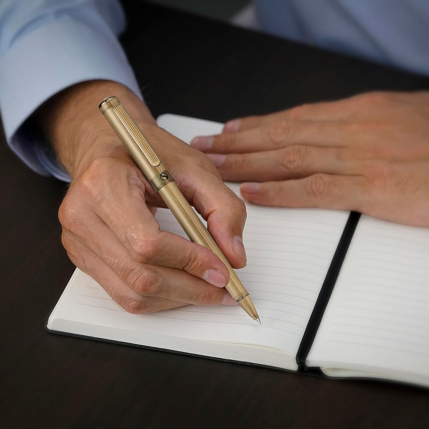 - Enjoy the feel of a true luxury pen in your hand – A truly stunning luxury rollerball by Scriveiner. Beautifully crafted out of brass with a Bronze hand-brushed finish and coated with a high-quality clear lacquer and Gold appointments complement the pens' rich texture