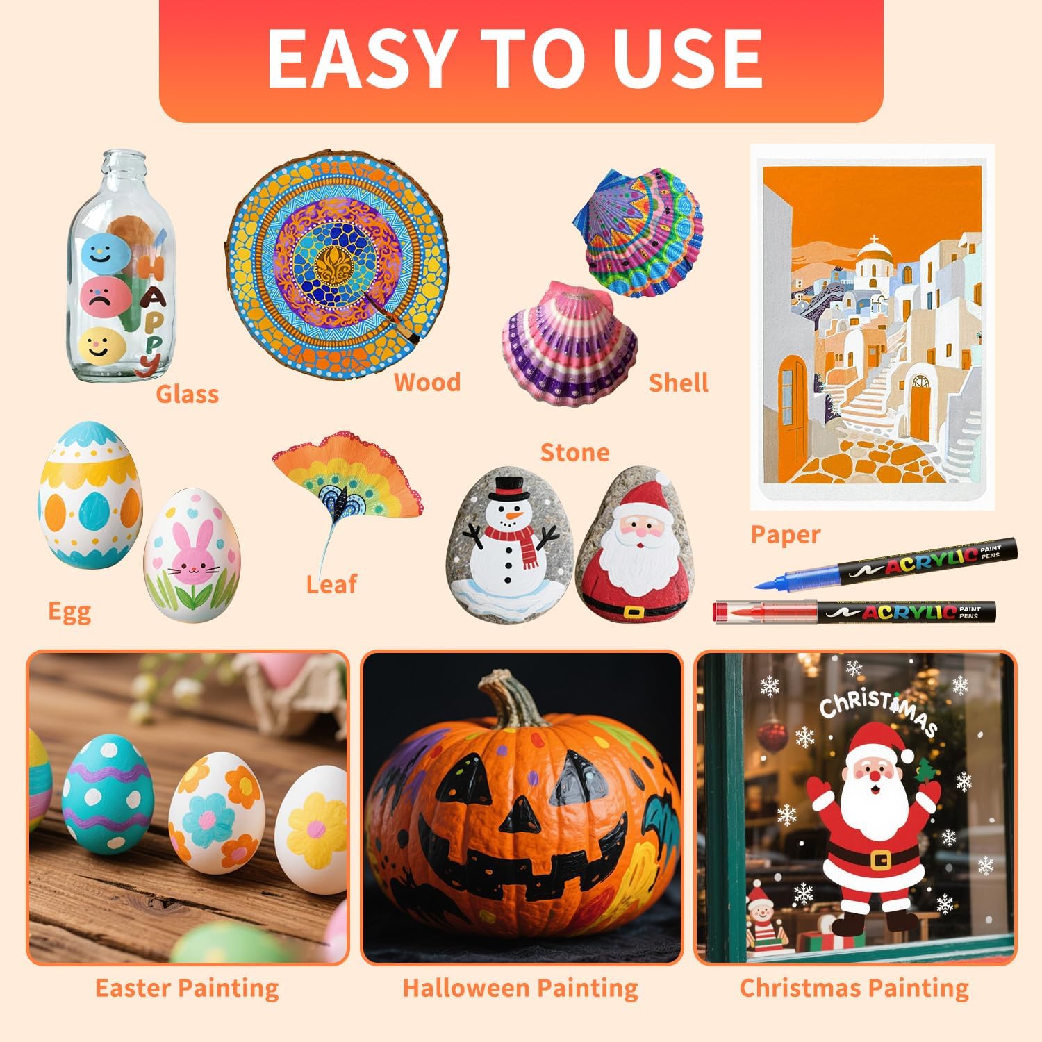 - 168 Colors Acrylic Paint Pens: The paint markers are perfect for a variety of surfaces, including ceramic, fabric, paper, rock, wood, glass, canvas, and more. Whether you're working on a DIY home improvement project or painting, these wood paint markers deliver bright, bold colors on every surface to get your imagination running wild