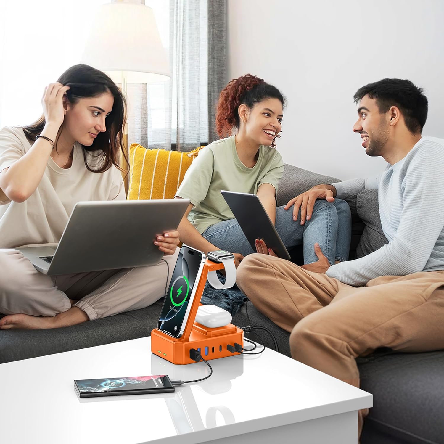 300W Charging Station for Multiple Devices Apple, Zutspzss 10 in 1 Wireless Charger for iPhone 16, GaN III USB C 65W PD Fast Charging Stand Dock for MacBook, Apple Watch&Airpods,Orange