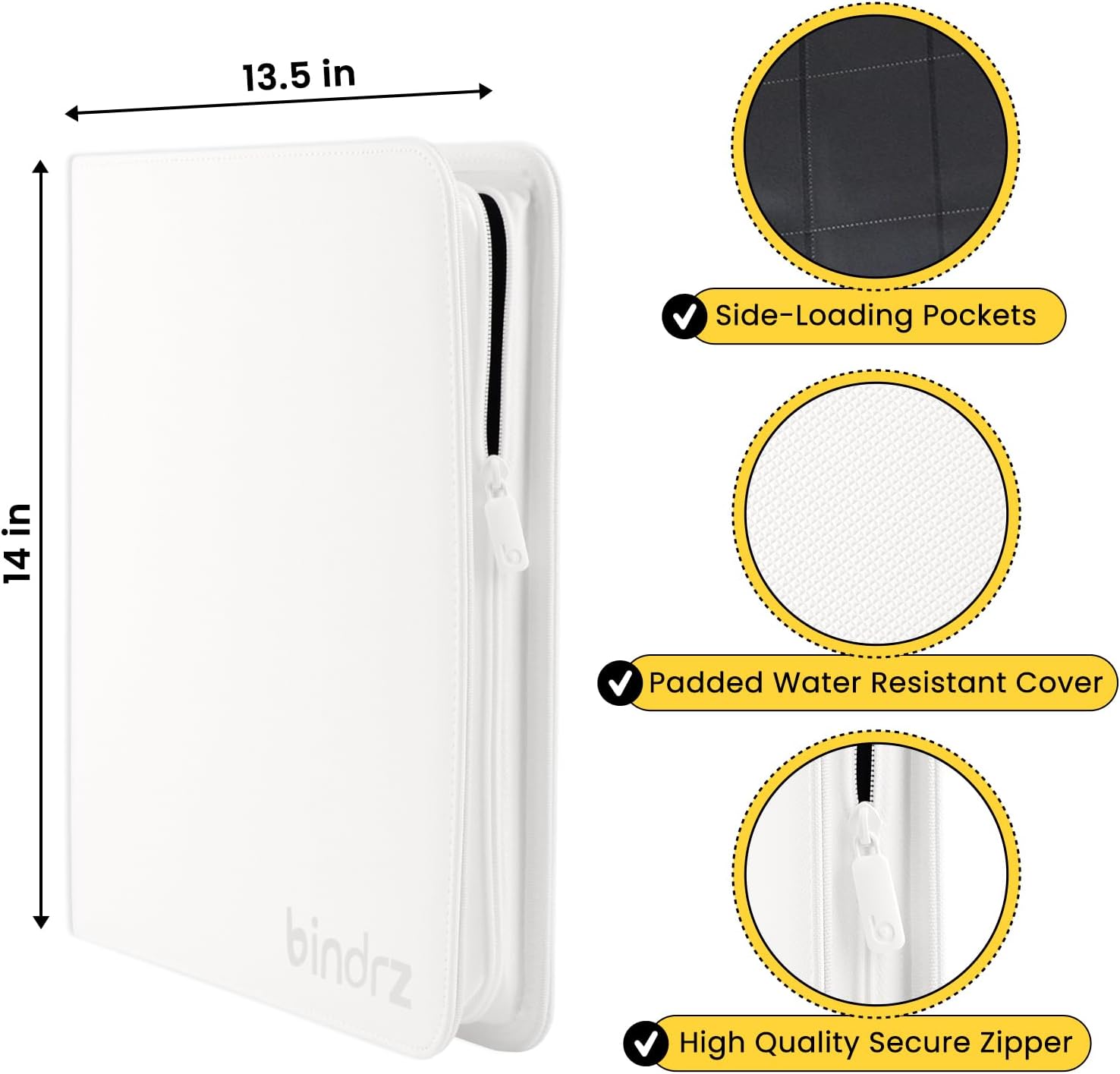 12 Pocket Zipper Binder for 480 Sleeved Trading Cards - Side Loading Pockets Album - Archival Safe Material and Compatible with TCG MTG and Sports Collectibles (White)