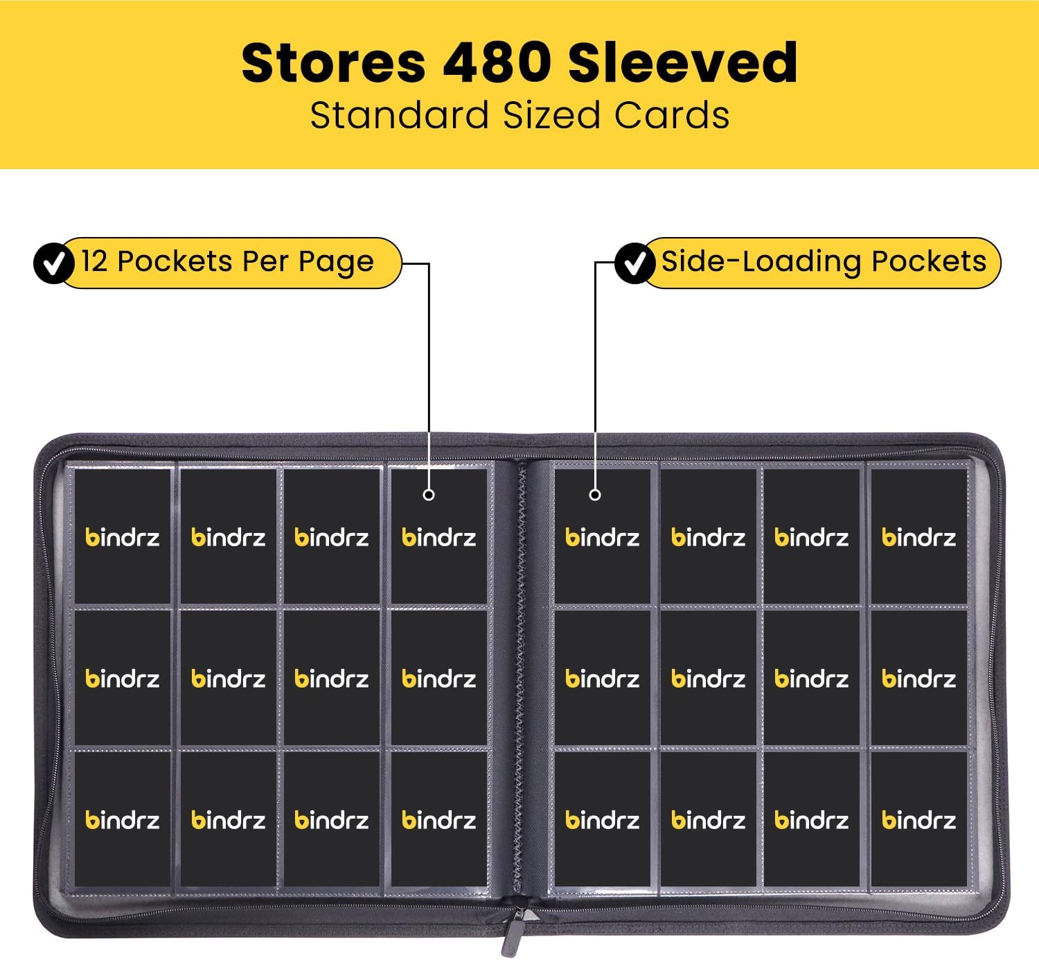12 Pocket Zipper Binder for 480 Sleeved Trading Cards - Side Loading Pockets Album - Archival Safe Material and Compatible with TCG MTG and Sports Collectibles (Black)