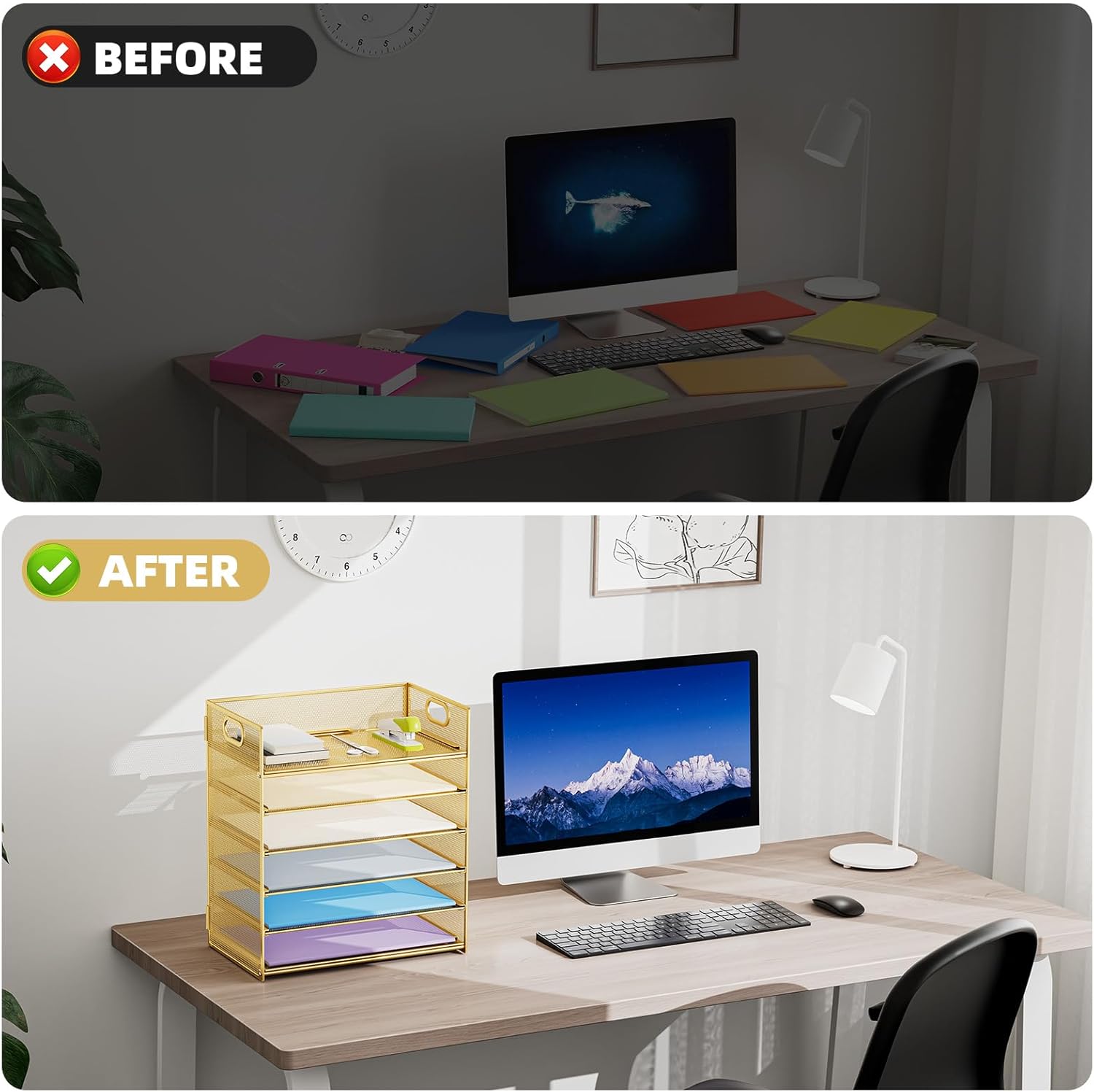 - 【MULTI-PURPOSE ORGANIZER】6-tier layered design and large capacity make the paper organizer become an ideal choice for managing all kinds of letter-size letters, paper, books, bills, etc. Let you quickly identify the contents of each compartment super easy