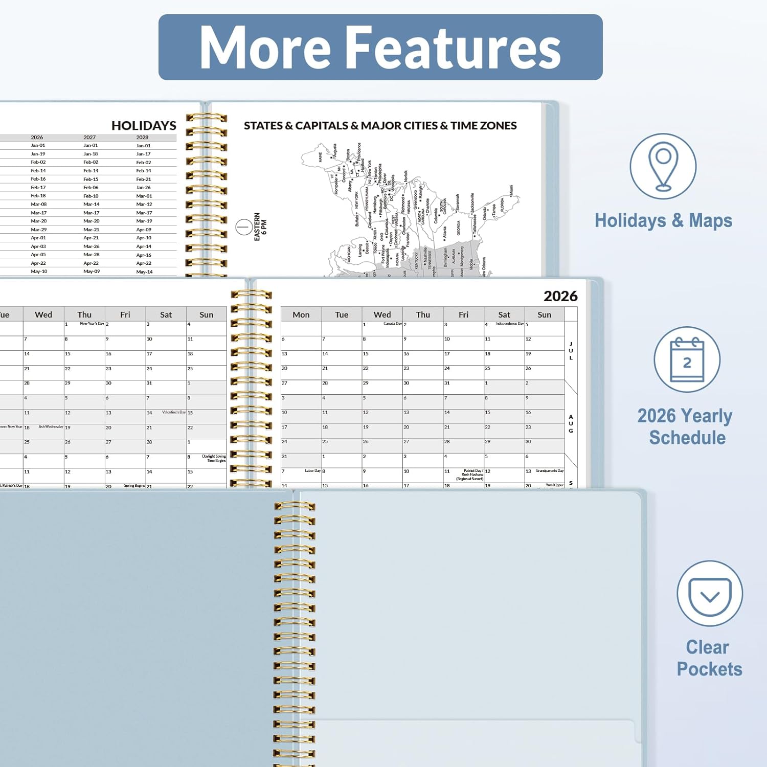 - Enhanced Planning Support: Includes 2026–2028 calendars, contacts, yearly overview, and U.S. holidays – ideal for students, teachers, professionals, and busy parents