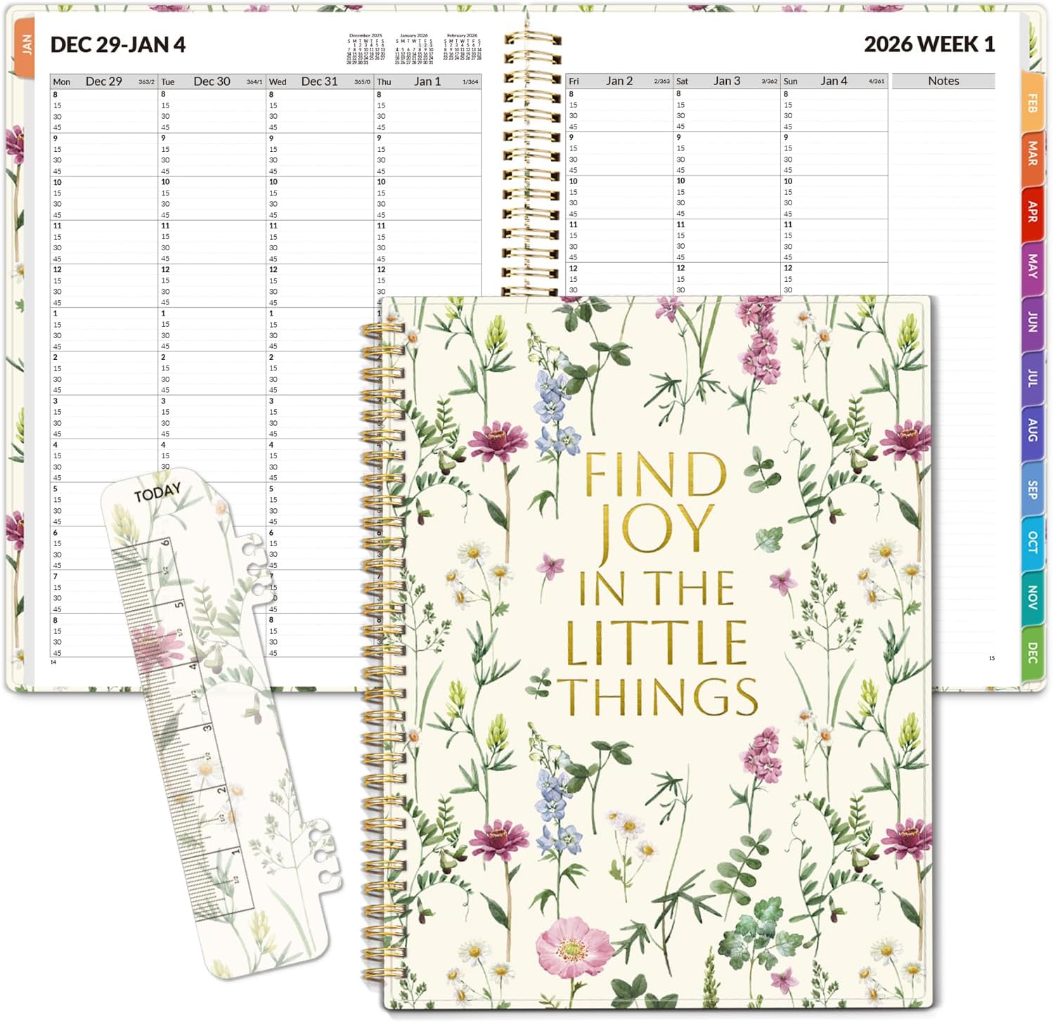 SUNEE 2026 Appointment Planner 15-Minute Time Block – Weekly & Monthly Spiral Organizer with Note Section – Thick Paper, Lay-Flat Bound – 8.5 x 11 for Office, School, Salon, Men & Women, Wildflowers