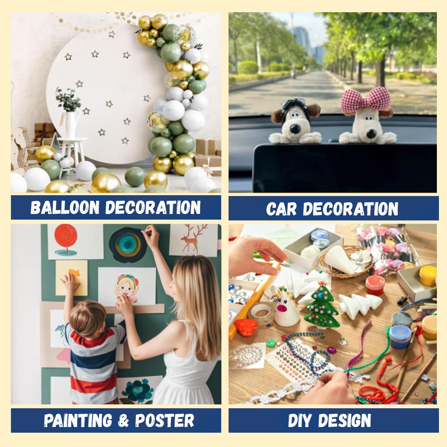 - ššš«š¬ššš¢š„š šš©š©š„š¢šššš¢šØš§š¬ ššØš« ššÆšš«š² šššš: ZuBiya sticky tack (tape dots) is perfect for securing posters, photos(photo safe tape, picture frame stickers,), scrapbooks, party decorations (balloon stickers, balloon tape), and other DIY crafts (double sided tape for crafts). It is suitable for use at home, in the office, or in school projects, providing a convenient solution for various needs