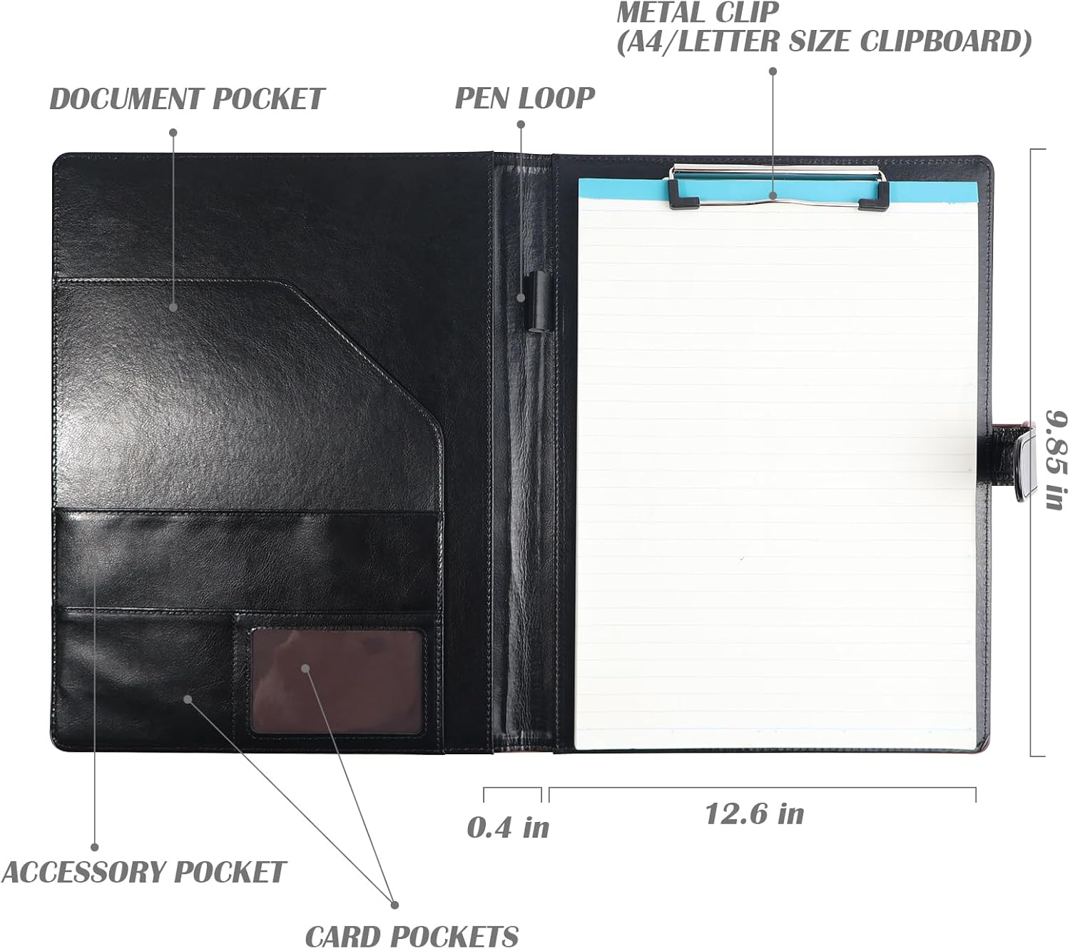 PU Leather Portfolio Binder, Professional Padfolio with Clipboard, Legal Pad Holder for A4 Letter Size Notepad, Resume Portfolio Folder for Business School Office Conference(Black)