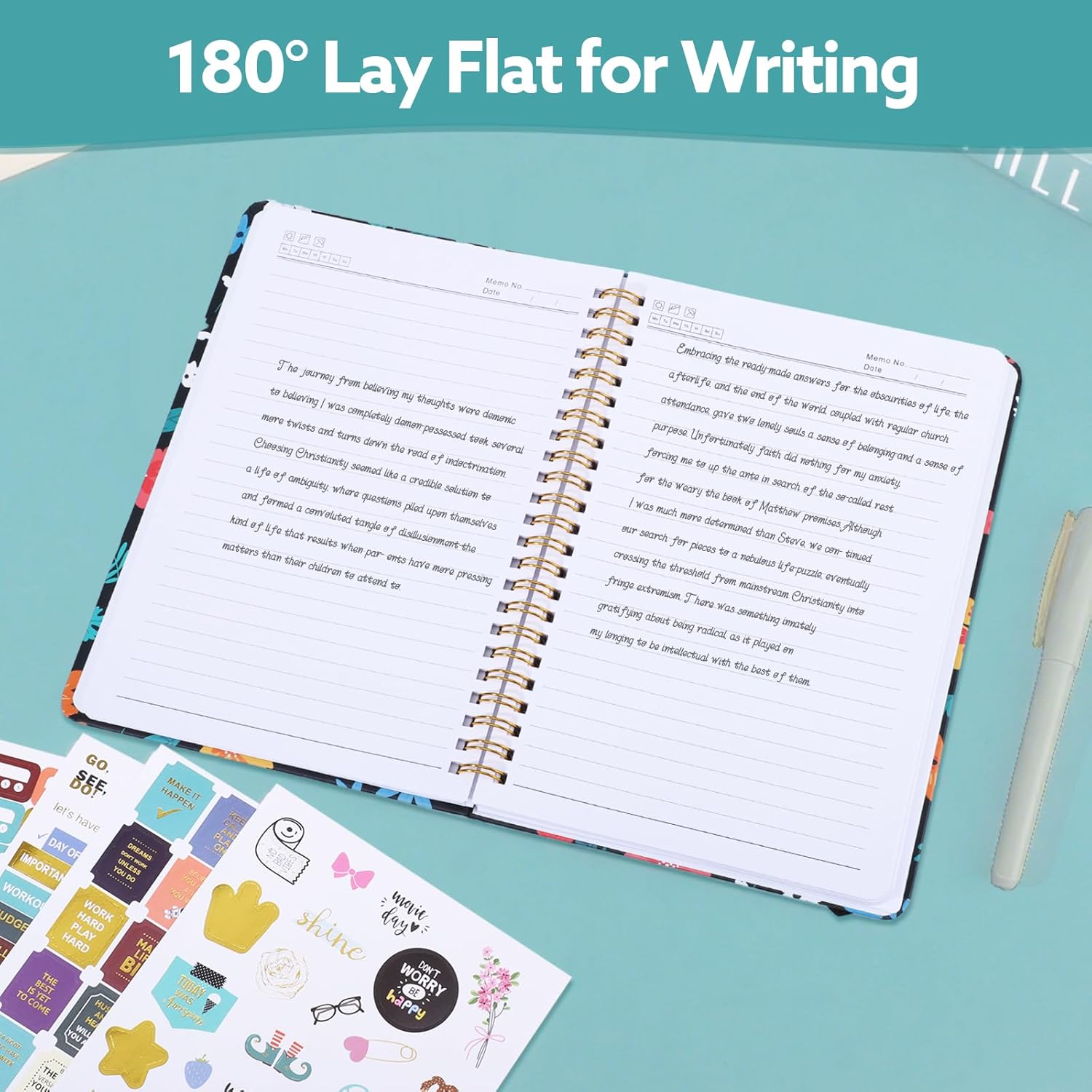 - 【Unique Designs】The 180° flat design makes your reading and writing easier. Elastic closure keeps the notebook closed when not in use, the back pocket is used to store invoices, cards, notes, etc., Unique cover pattern designes make your n